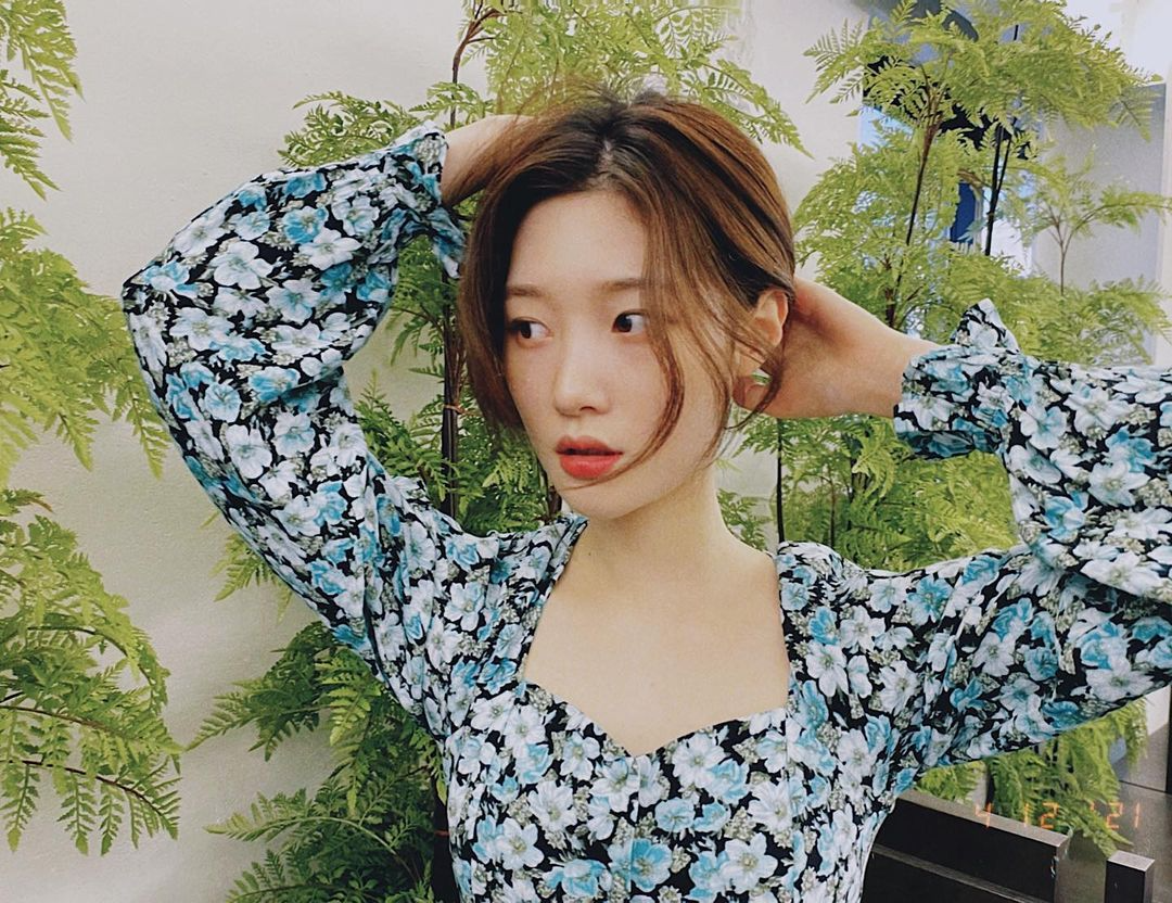 정채연이 착용한 러플 장식의 비스코스 소재의 블라우스는 바로 앤아더스토리즈 제품. 정채연이 착용한 후 일명 정채연 블라우스로 불렸다는 소리가 있을 정도로 잘 어울리는 이 제품은 하트 네크라인과 싱그러운 그린 컬러의 플로럴 패턴이 특징이다. 앤아더스토리즈 특유의 여성스럽고 사랑스러운 무드가 그대로 드러나는 이 블라우스는 다가오는 6월 하객룩으로도 안성맞춤!