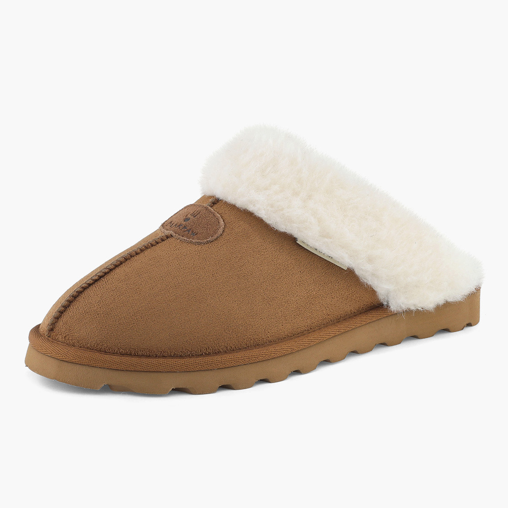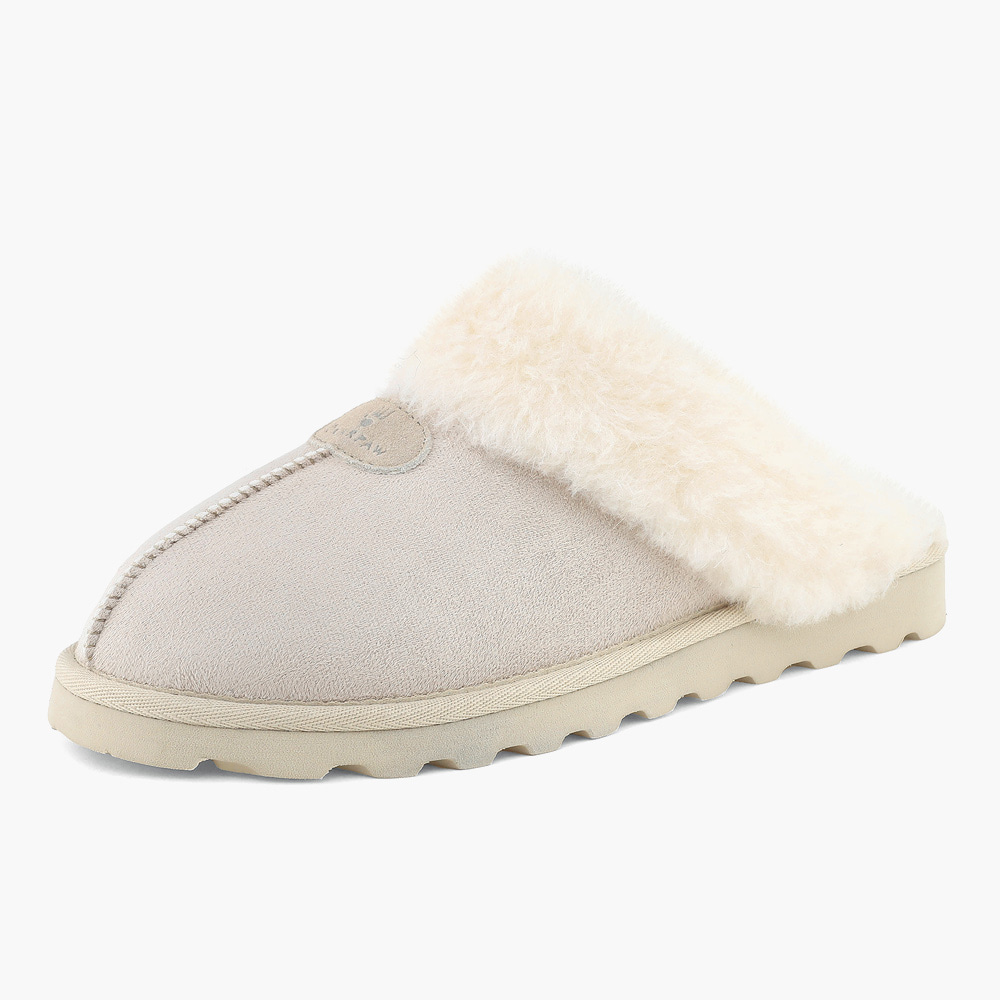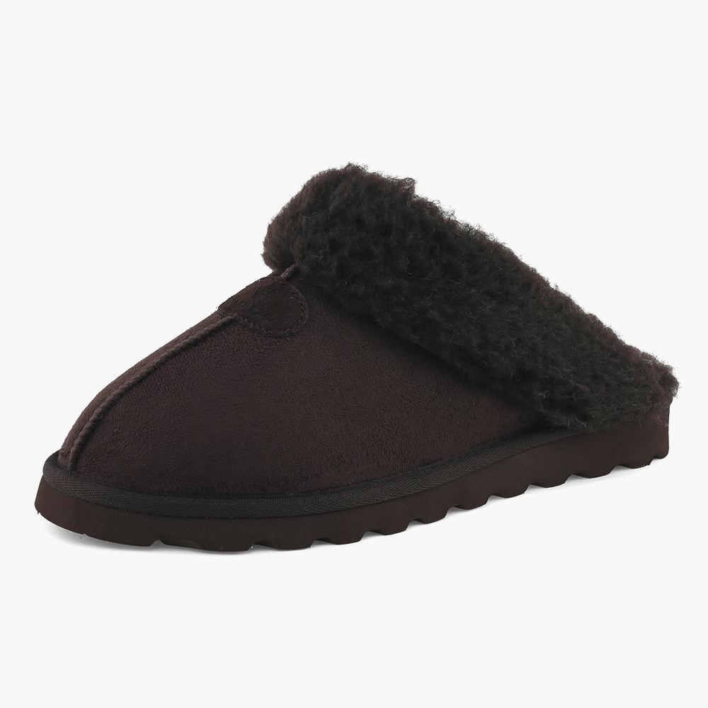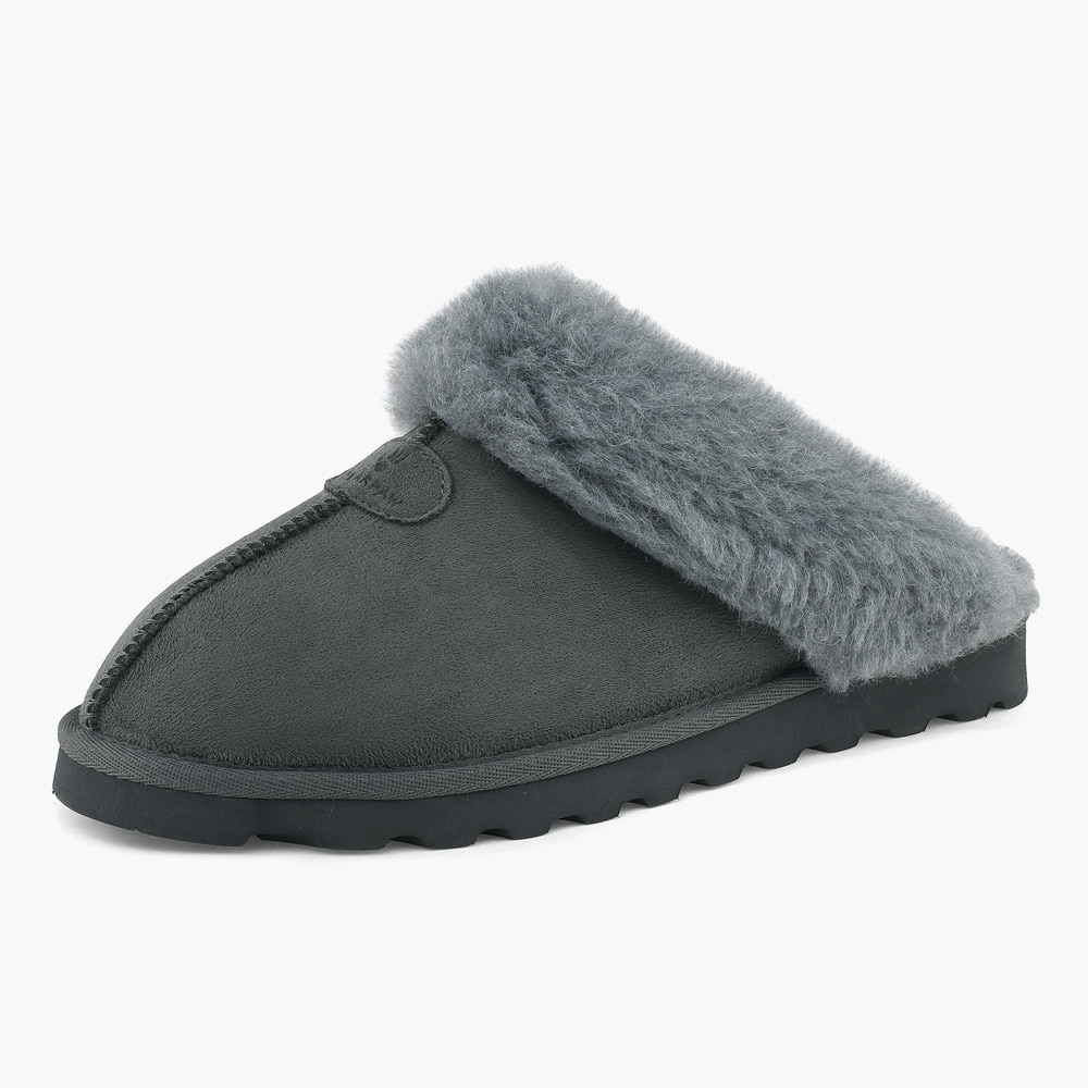 스웨이드 소재로 이루어진 따뜻한 양털 슬리퍼.