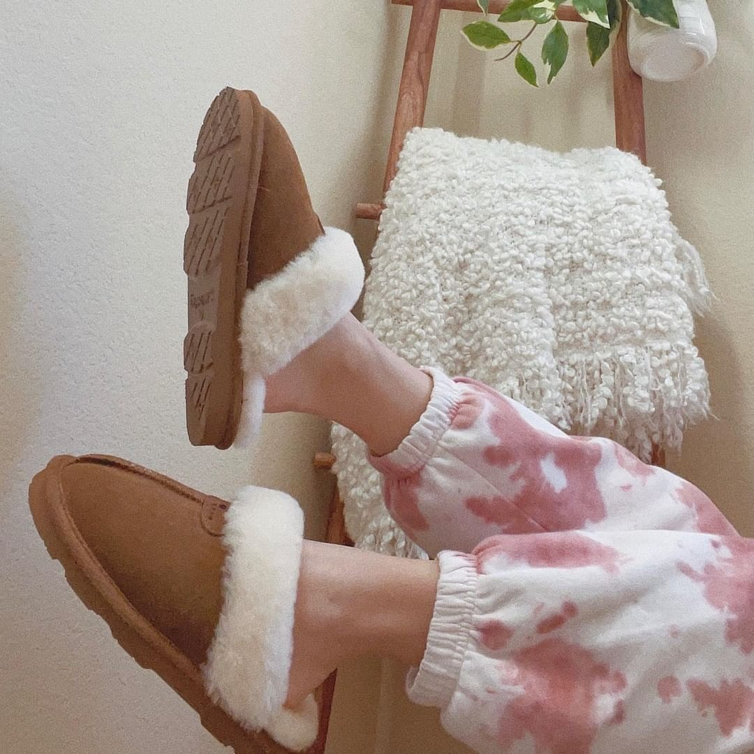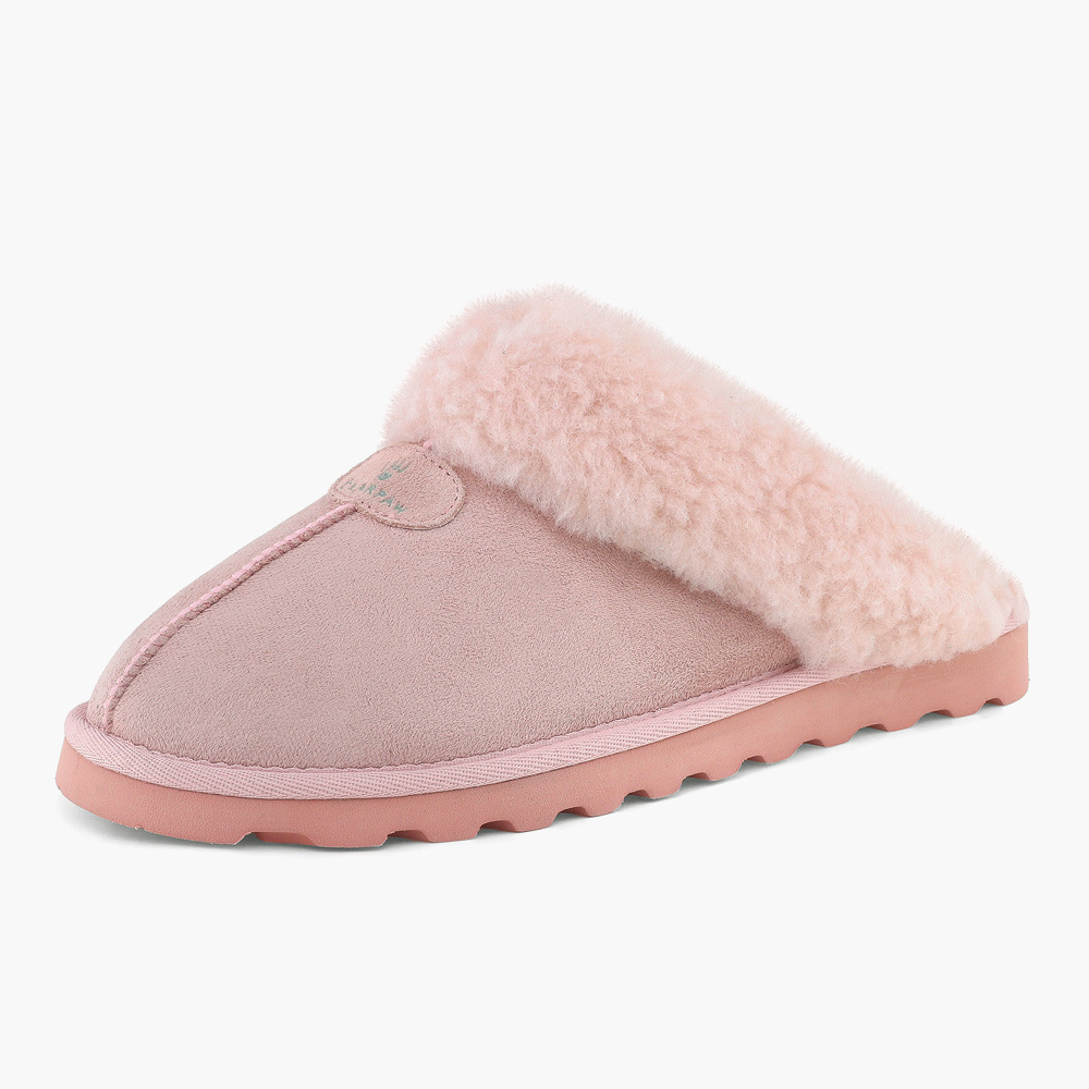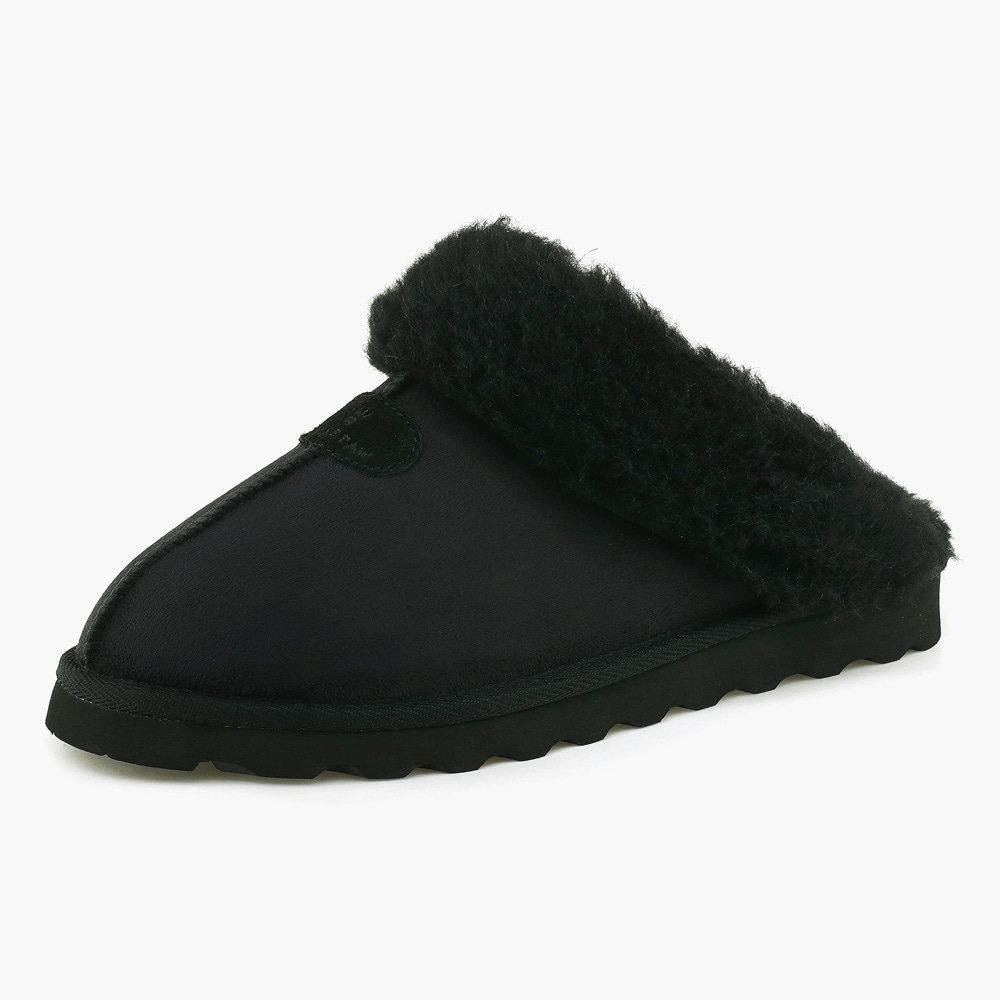 스웨이드 소재로 이루어진 따뜻한 양털 슬리퍼.