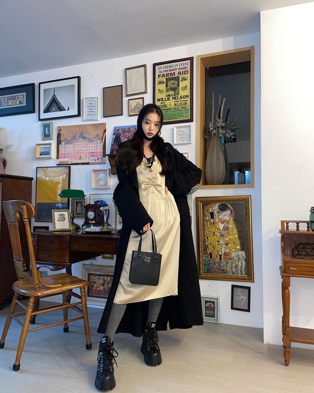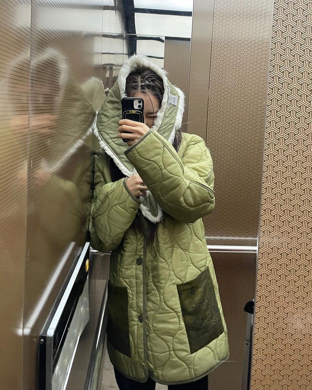 눈이 오는 한 겨울에도 편하게 신을 수 있는 부츠를 찾는다면 모델 아이린이 착용한 패딩 부츠가 제격.