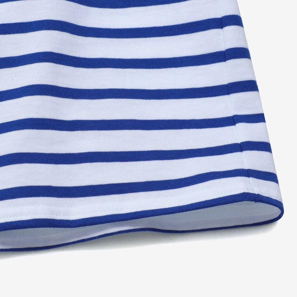 100% 면 소재로 제작되어 가벼우면서도 보드라운 느낌을 느낄 수 있는데요. 세인트제임스 밍콰이어 18의 경우 고소영이 착용한 블루 컬러 외에도 딥한 레드 컬러 스트라이프 패턴이 새겨진 에크루 컬러와 한 단계 밝은 비비드한 레드 컬러가 아더 컬러로 함께 출시되었어요. 세 가지 컬러 밍콰이어 18 티셔츠 모두 xs와 s 그리고 m 세 가지 사이즈로 출시됐습니다.