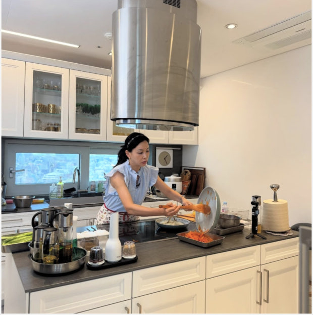 근래에는 유튜브를 통해 김밥과 오이소박이를 만들어 먹는 콘텐츠를 올렸는데 이 때 고소영이 착용한 룩에 대한 관심이 꽤나 높았습니다. 바로 2만원 대 h&m 블라우스 때문인데요!