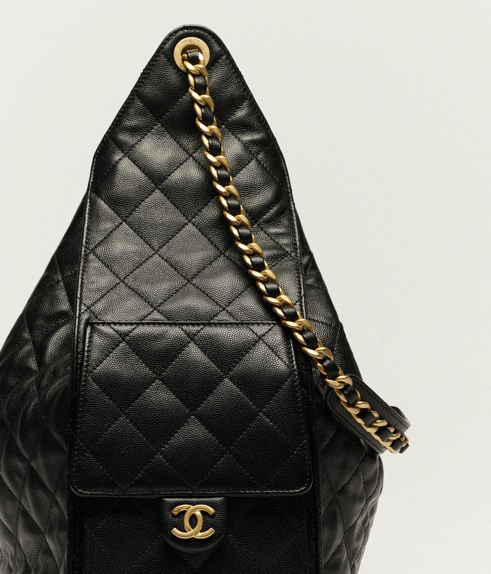 2025/26 가을-겨울 프리-컬렉션 컬렉션의 호보 백: 샤넬 공식 웹사이트의 CHANEL 25 라지 백, 그레인드 카프스킨, 골드 메탈, 블랙