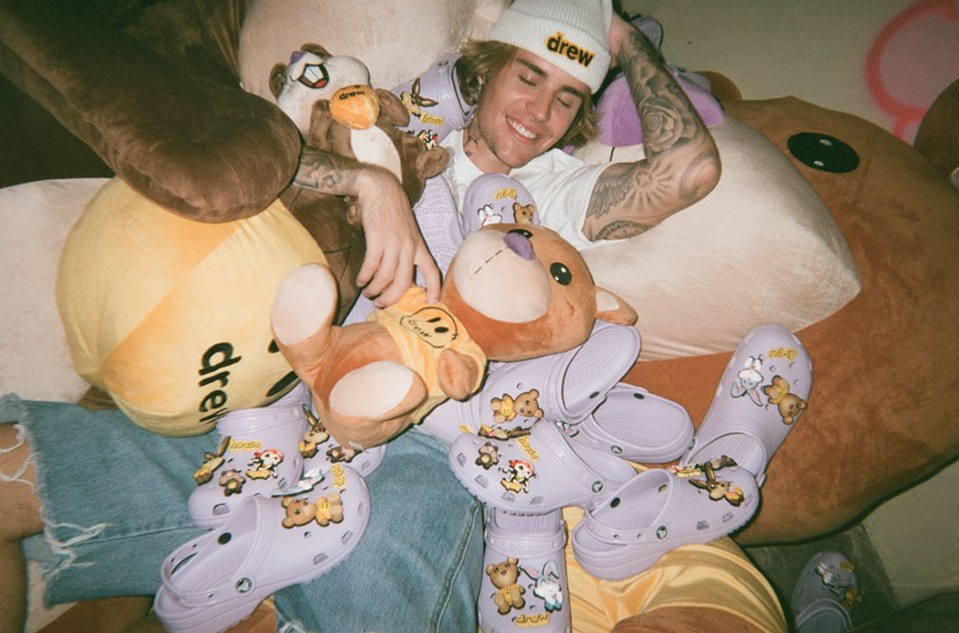 크록스와 비버의 팬들은 모두 이 소식에 환호 했다고. 저스틴 비버의 의류 브랜드 '드류 하우스' 화이트 양말에는 크록스와의 협업으로 라벤더 컬러가 칠해진 클래식 클로그가 등장했고. 오버사이즈 드류하우스 자비츠도 만나볼 수 있다고.