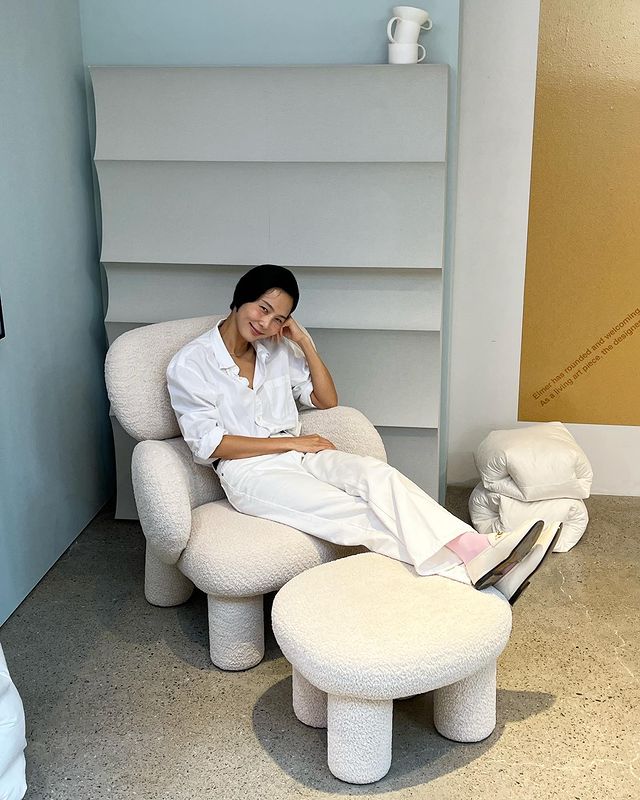 김나영이 올 화이트 룩에 함께 매치한 델보의 아이코닉한 제품은 브리앙 MM 아이보리 컬러다.