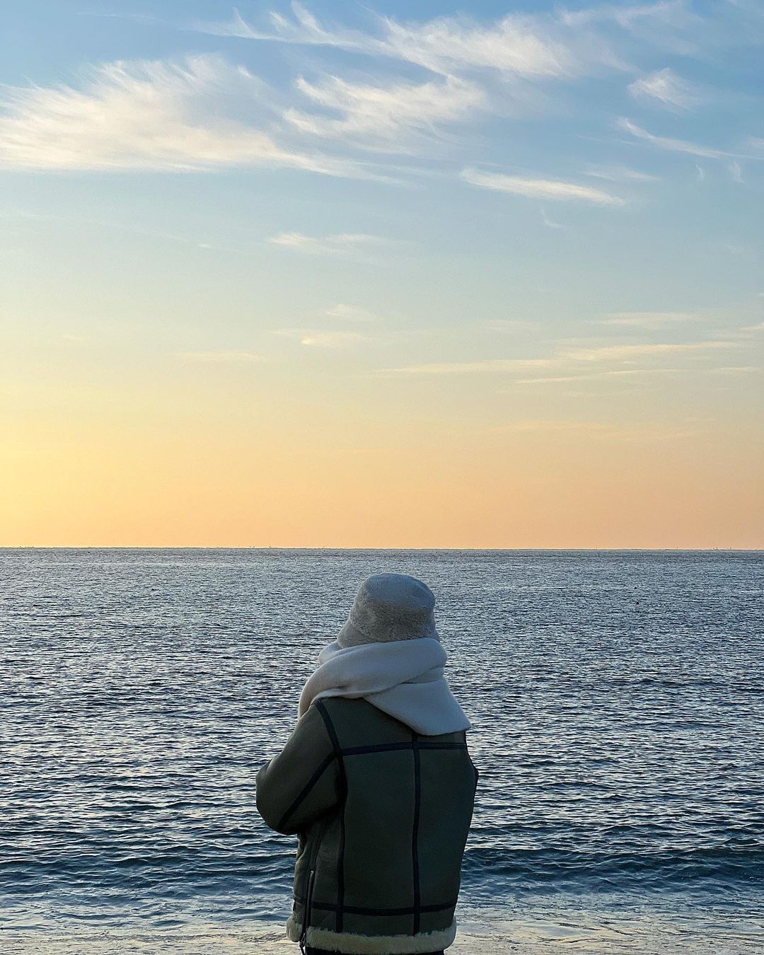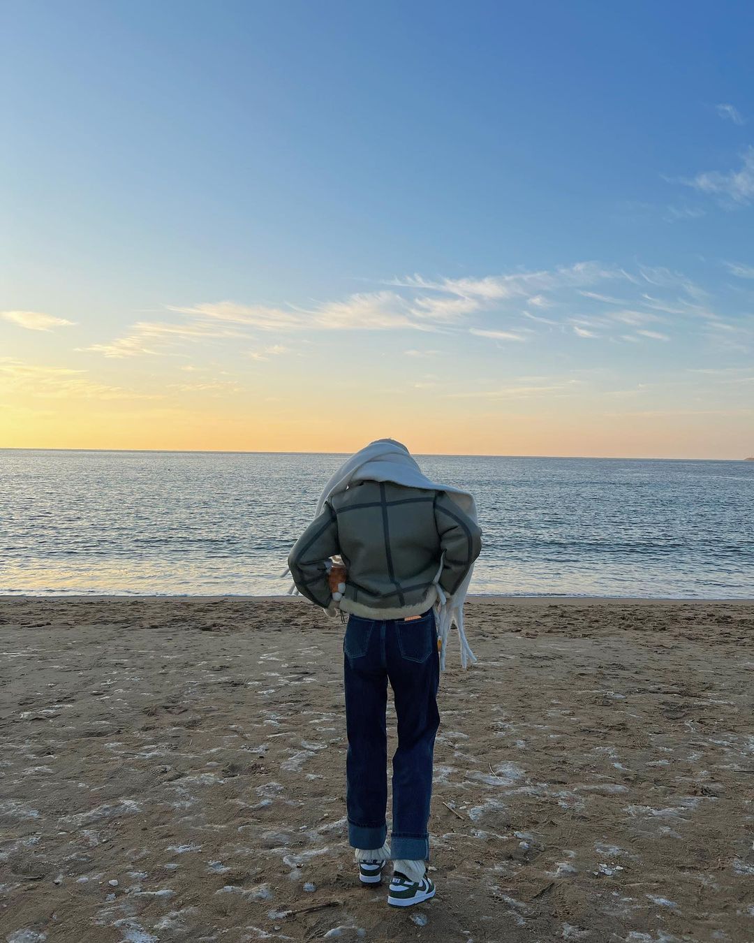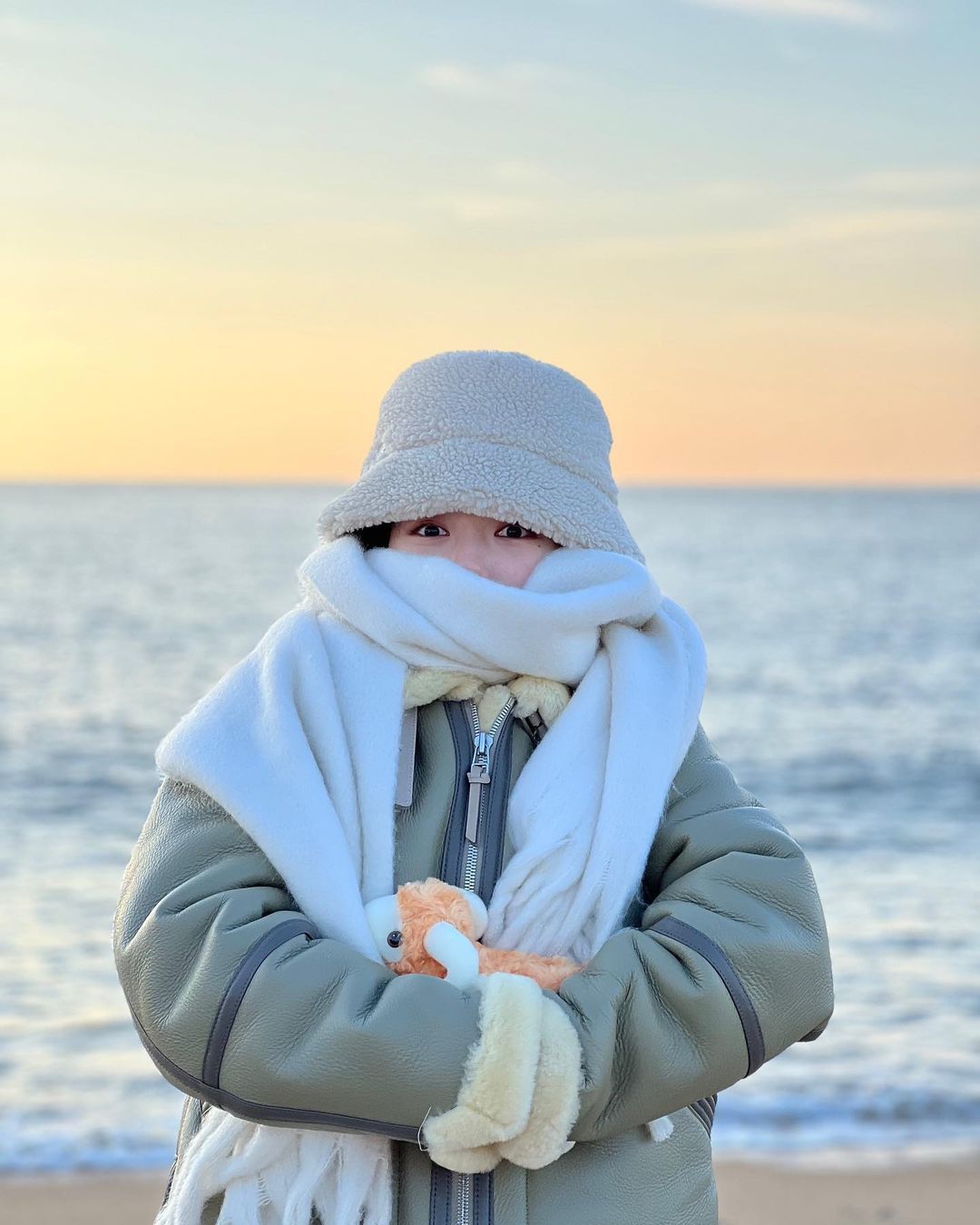 크리스마스날 인스타그럄에서 김유정 세젤귀 의 근황사진이 업데이트 되었습니다. 해변에서 김유정이 입은 무스탕!