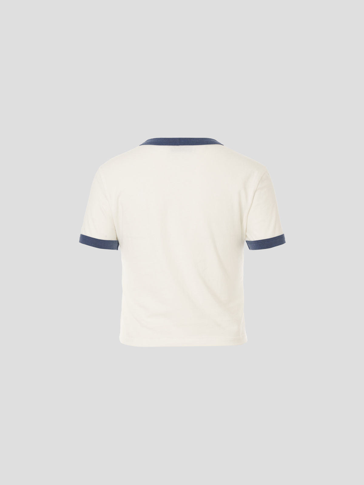 렉토 베이비 링거 티는 넥 라인과 소매 밴딩의 깔끔한 배색이 매력적인 아이템으로 김지원 뿐만 아니라 많은 셀럽과 인플루언서들의 사랑을 받고 있는 아이템입니다. 어떻게 스타일링 하느냐에 따라 클래시한 룩부터 스포티룩까지 다양한 연출이 가능하죠.