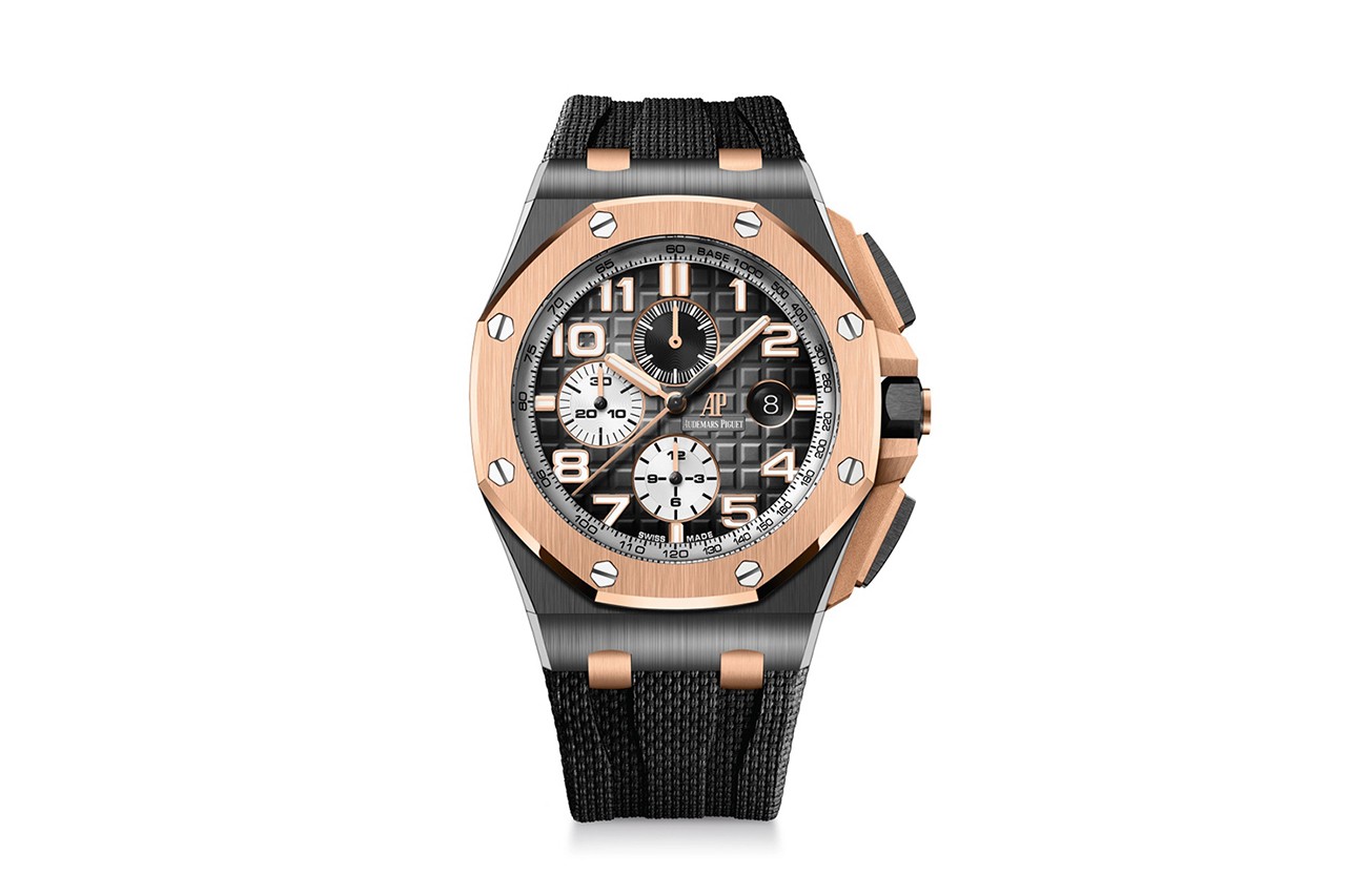 이번에 공개된 크로노그래프 라인은 기존 로얄 오크 오프쇼어 라인의 실루엣은 유지하면서, 배젤과 다이얼, 스트랩에는 그린, 블루 그리고 핑크골드 색상을 적용하였다.