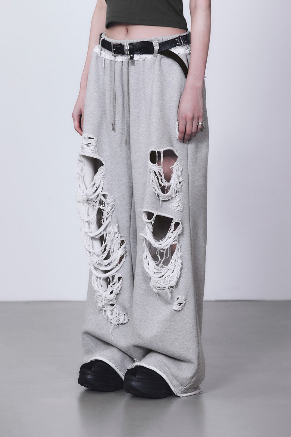 나나는 최근 마땡킴 크롭 티셔츠에 트리밍버드의 데미지 스웻 팬츠를 매치해 걸크러쉬 패션을 완성했습니다.