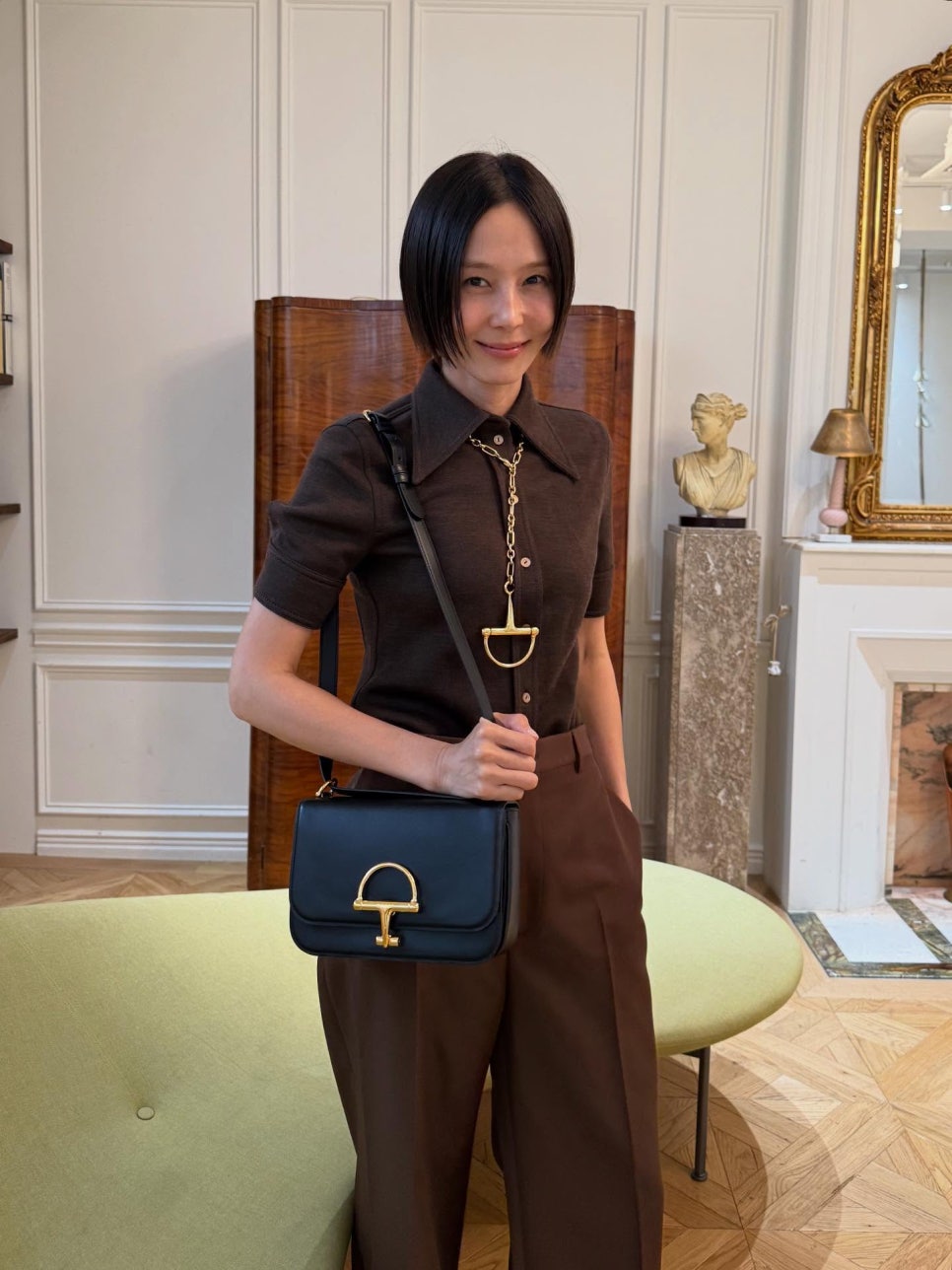 김나영의 센스 있는 사복패션처럼 말이죠. 최근 김나영은 가을 무드가 가득한 브라운 계열의 룩을 입은뒤 길게 내려오는 네크리스와 함께 구찌의 시에나백을 매치했는데요. 네크리스와 가방의 홀스빗 문양을 통일해 한층 스타일리시한 모습을 선보였습니다.