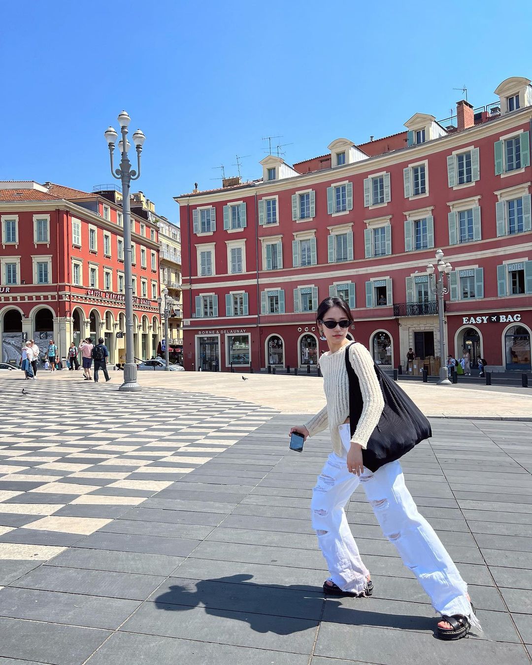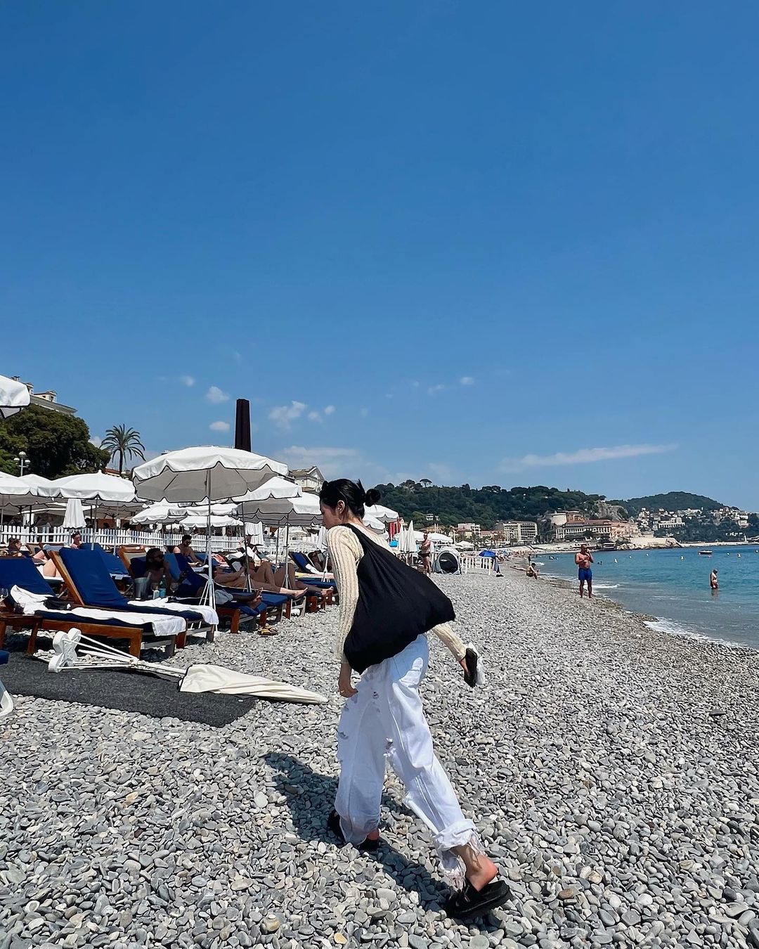 휴양지나 유럽 등 여행 시, 발에 부담 없이 편안하게 신을 여름 샌들을 원한다면 노윤서가 선택하 닥터마틴 라이커 샌들을 추천한다. 노윤서는 심플하면서도 깔끔한 아이보리 니트에 화이트 팬츠 그리고 블랙 컬러 라이커 샌들을 매치해 내추럴한 트레블 룩을 선보였다.