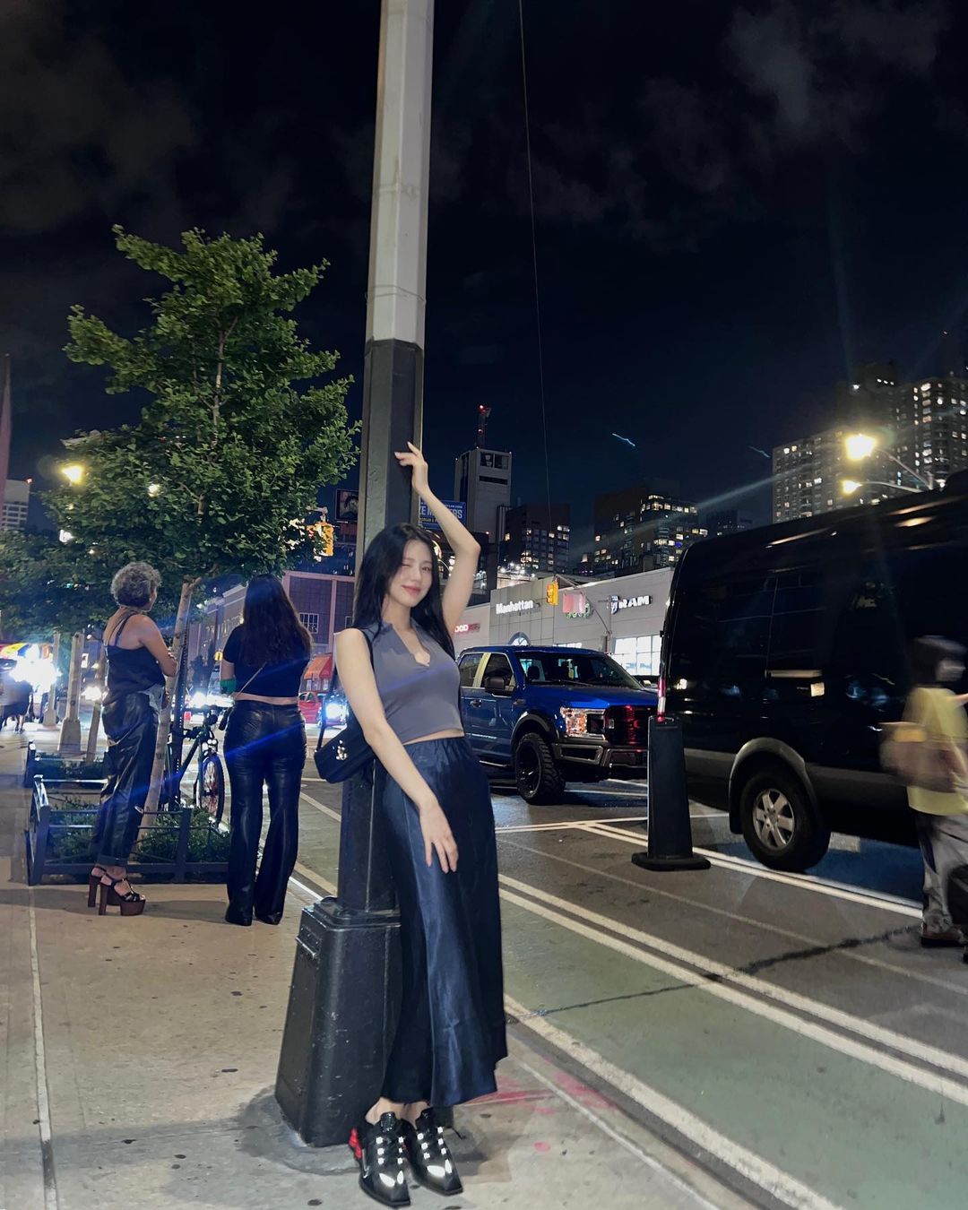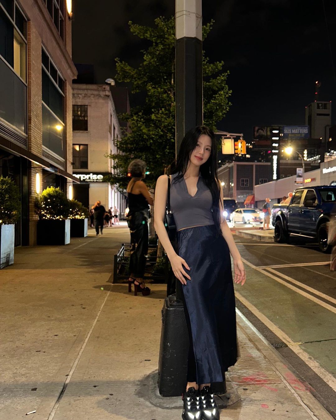 편안한 슬라이드 샌들도 좋지만 한층 더 여성스러운 무드를 연출할 수 있는 닥터마틴 샌들을 찾고 있다면 여자아이들 미연이 선택한 '나틸라'가 좋은 대안이 되어 줄 수 있다. 미연은 홀터넥 민소매 톱에 새틴 스커트에 나틸라를 매치해 힙하면서도 트렌디한 아웃핏을 연출했다.