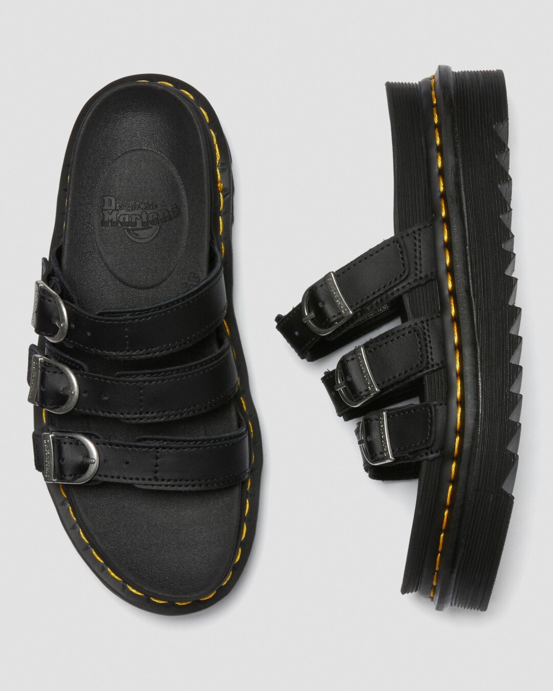 닥터마틴 블레어 샌들은 통굽으로 구성되어 키높이 효과를 연출해 주는 아이템 중 하나다. 닥터마틴 슬리퍼 중에서도 가장 인기 있는 아이템. 또 견고하고 조절 가능한 버클 3개의 스트랩이 특징이니 스타일링 시 참고해 둘 것.