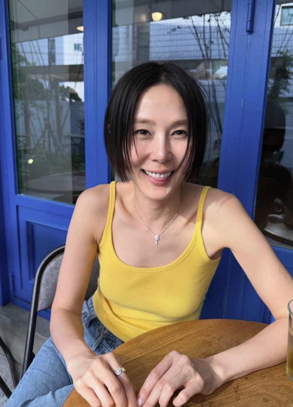 사진 속 김나영은 슬리브리스 톱이나 청바지처럼 캐주얼한 착장에 이 헤어를 매치해 자연스러우면서도 감각적인 무드를 보여주고 있는데요, 이는 특히 광대나 턱 라인이 또렷한 얼굴형에게 잘 어울리기도 해요.