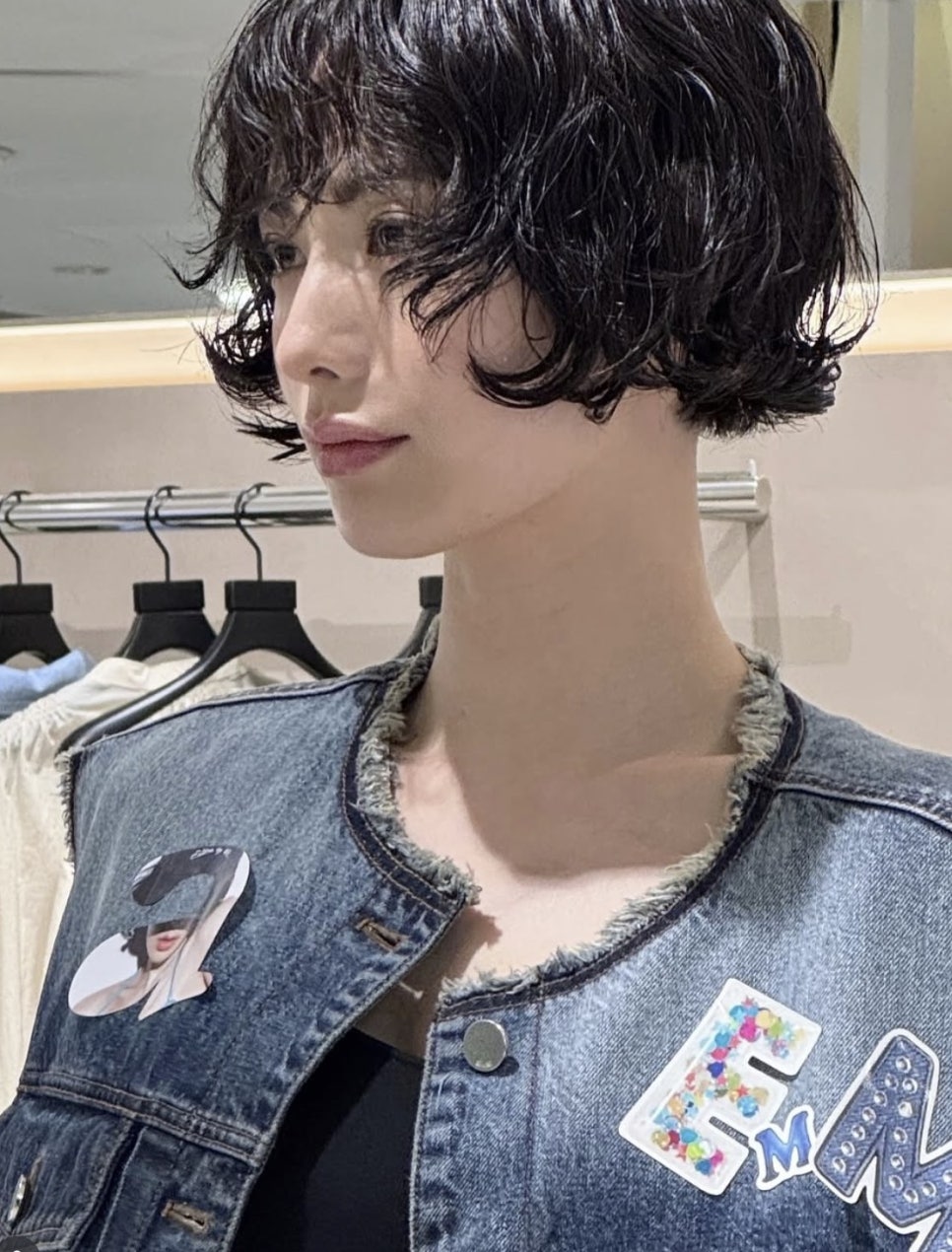 데님 재킷과 매치한 사진에서는 빈티지하면서도 쿨한 매력을 강조해 스타일링만으로도 충분히 시선을 끌 수 있는 강한 개성을 드러내고 있습니다. 빈티지펌은 특히 직모로 스타일링이 단조로운 분들이나, 굵은 얼굴형을 커버하고 싶은 분들에게 이상적! 꾸안꾸 느낌을 원하면서도 유니크함을 놓치고 싶지 않다면 이 스타일을 추천드려요.