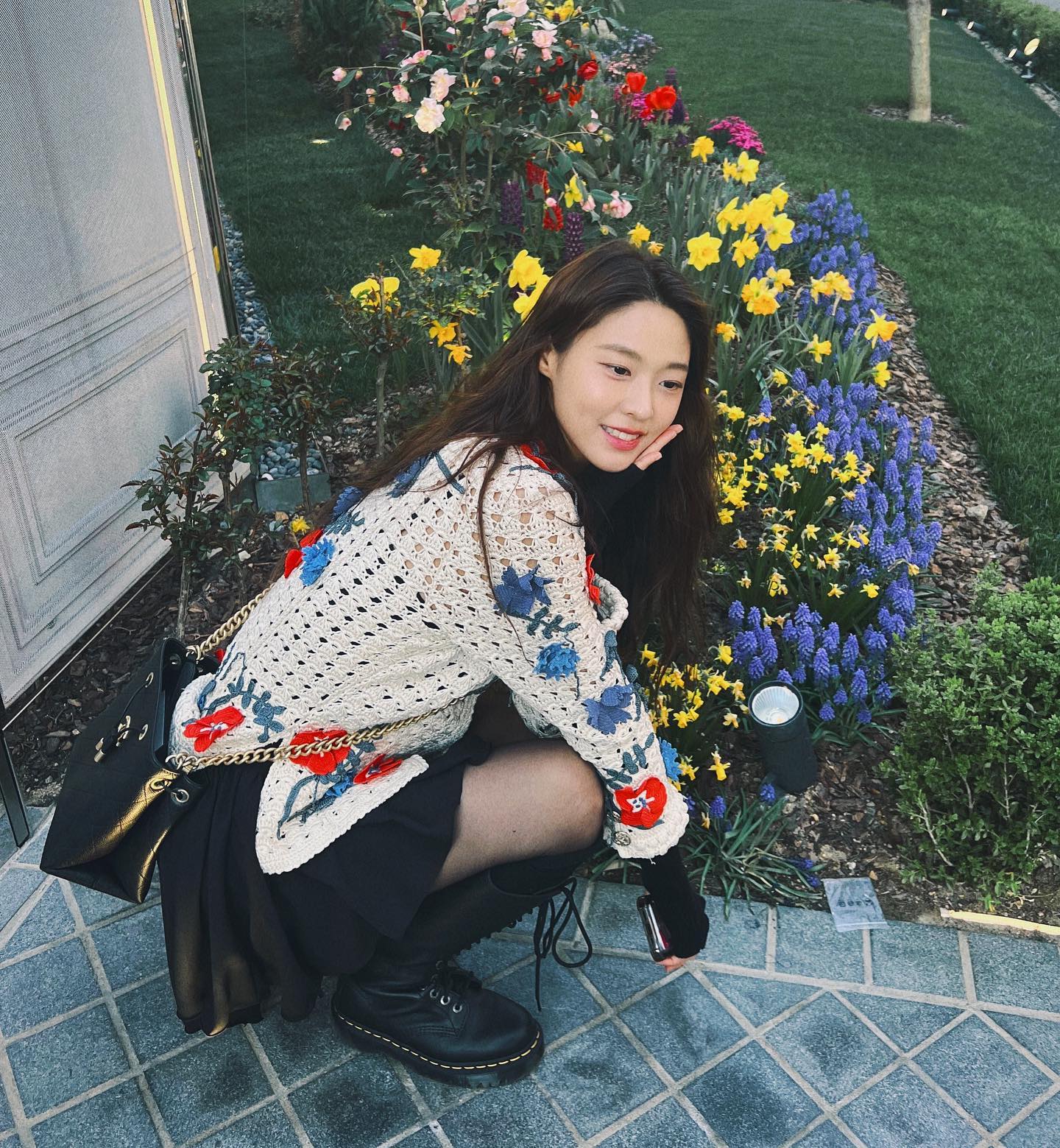 그럴 땐 한소희처럼 미니스커트에 아티스틱한 스타킹 그리고 워커를 착용해 보는 건 어떨까? 패턴이 가미된 미니 스커트와 스타킹은 펑키하면서도 트렌디한 무드를 선사하기 충분하다. 그뿐 아니라 최근 유행하는 Y2K 패션으로도 제격. 또 발목 이상으로 올라오는 워커는 키높이 효과는 물론 보온 효과를 준다. 여성스럽기만 한 나들이 룩이 조금 진부하다면, 한소희처럼 유니크한 나들이 룩에 도전해 보는 걸 추천한다.