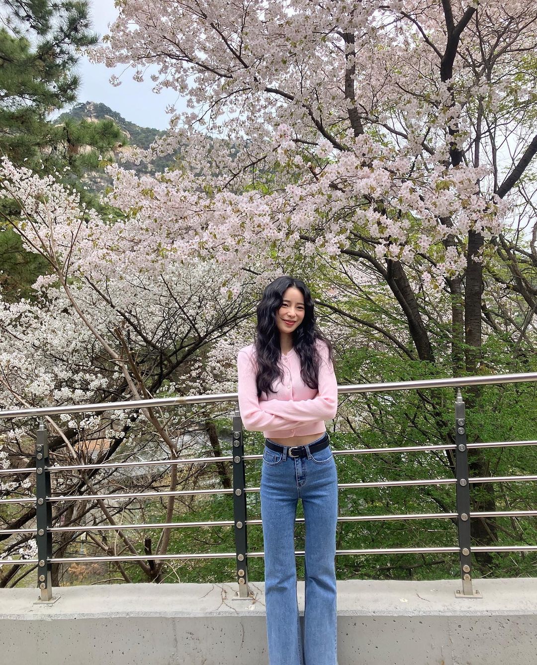 한층 더 산뜻한 봄의 기운을 만끽하고 싶다면, 임지연처럼 봄꽃을 닮은 핑크색 카디건과 데님 부츠 컷을 매치해 보길. 임지연은 크롭 기장의 가디건에 중청 컬러 데님 진을 통해 심플하면서도 캐주얼한 나들이 룩을 선보였다. 여기에 두께감이 있는 버클 벨트를 더해주면 한층 더 레트로적인 분위기를 연출할 수 있다. 올 봄, 핑크& 블루 조합 나들이 룩에 구두를 매치해 드레스 업하거나, 편안한 스니커즈를 활용해 봄 바람을 즐겨 볼 것.