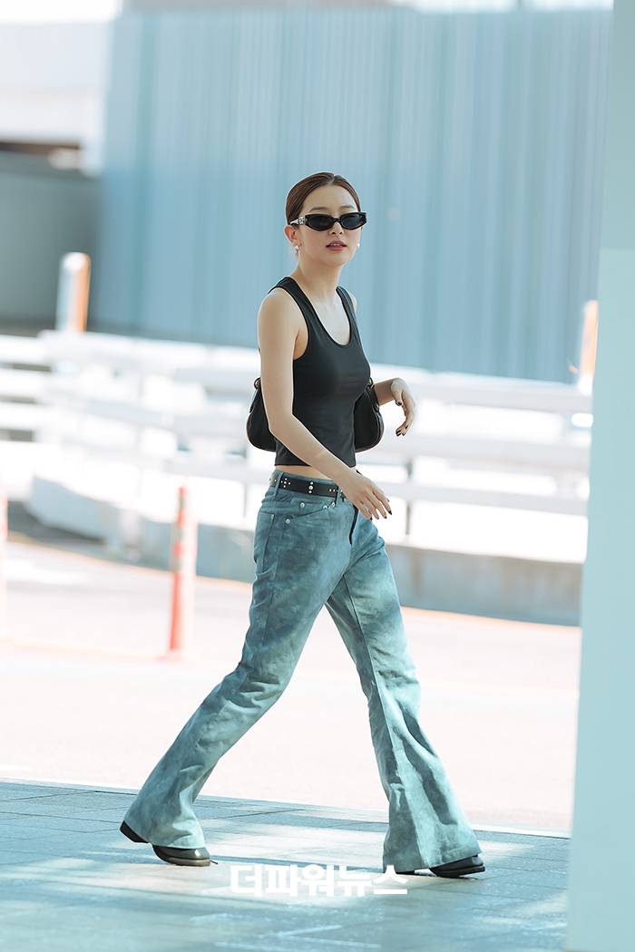 그리고 최근에도 역시~ 레벨 슬기는 월드 투어를 위해 찾은 인천공항에서 캐주얼하지만 힙한 공항패션을 선보였습니다. 이 날 슬기는 베이식하면서도 미니멀한 느낌이 나는 블랙 민소매에 유니크한 무드의 데님 팬츠를 착용했는데요.