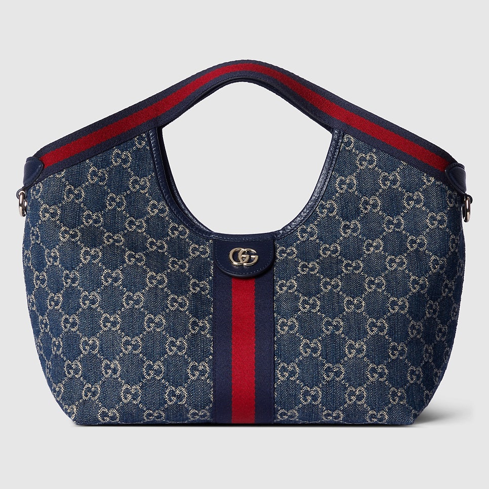 GG 데님 소재로 제작되어 캐주얼하면서도 멋스러운 분위기를 연출합니다.