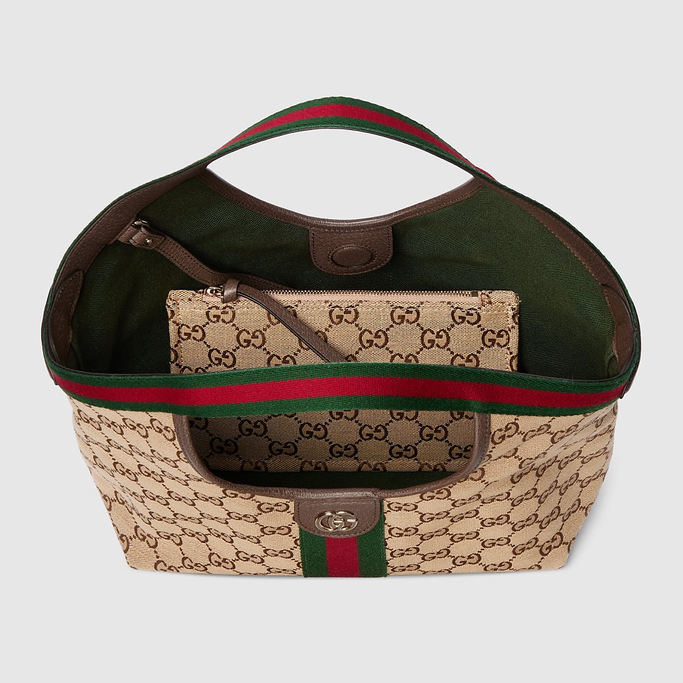이 가방은 피렌체에서 열린 2026 구찌 크루즈 패션쇼에서 처음 공개되었습니다. 베이지와 다크 브라운의 GG 캔버스 소재에 노색과 빨간색 웹 캔버스 트림으로 포인트를 주었습니다. 안감은 리넨으로 제작되었고, 탈부착 가능한 작은 파우치가 함께 제공되어 실용성을 높였습니다.