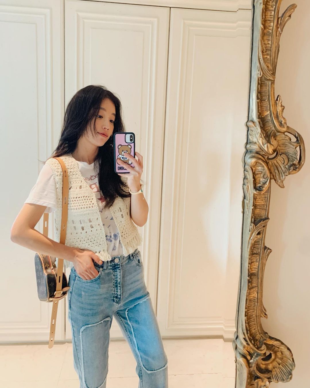 청순함이 느껴지는 크로셰 소재의 니트 카디건에 패턴이 들어간 독특한 청바지를 매치한 기은세. 그녀가 선택한 귀여운 가방은 하트 모양이 매력적인 루이비통의 게임 온 쾨르 제품. 루이비통 게임 온 쾨르는 모노그램 캔버스 소재로 루이비통 특유의 모노그램 패턴이 특징인 제품으로 숄더 백부터 크로스 바디 백 등으로 스트랩 조절이 가능한 유용한 잇 백. 루이비통 게임 온 쾨르, 2백 59만 원