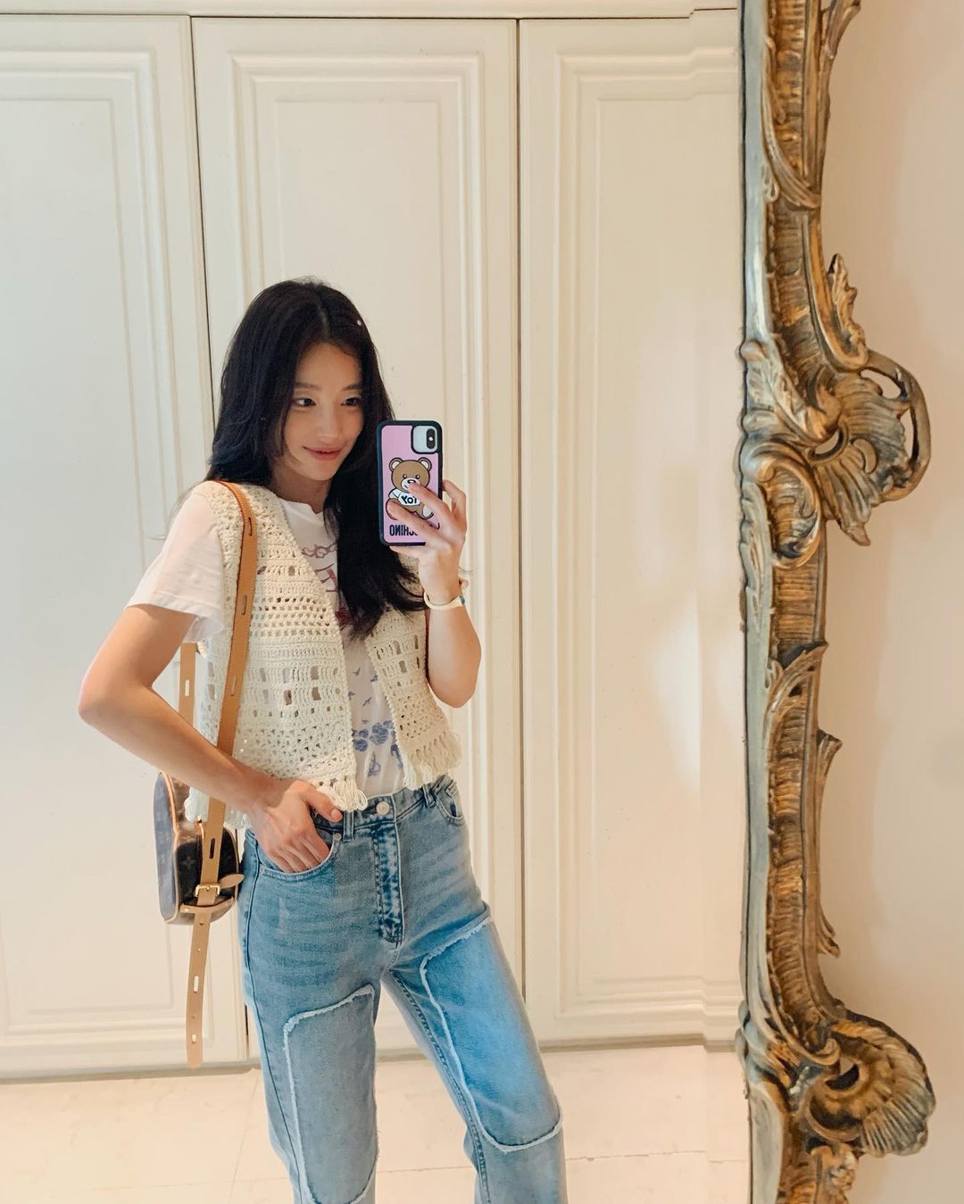 청순함이 느껴지는 크로셰 소재의 니트 카디건에 패턴이 들어간 독특한 청바지를 매치한 기은세. 그녀가 선택한 귀여운 가방은 하트 모양이 매력적인 루이비통의 게임 온 쾨르 제품. 루이비통 게임 온 쾨르는 모노그램 캔버스 소재로 루이비통 특유의 모노그램 패턴이 특징인 제품으로 숄더 백부터 크로스 바디 백 등으로 스트랩 조절이 가능한 유용한 잇 백. 루이비통 게임 온 쾨르, 2백 59만 원