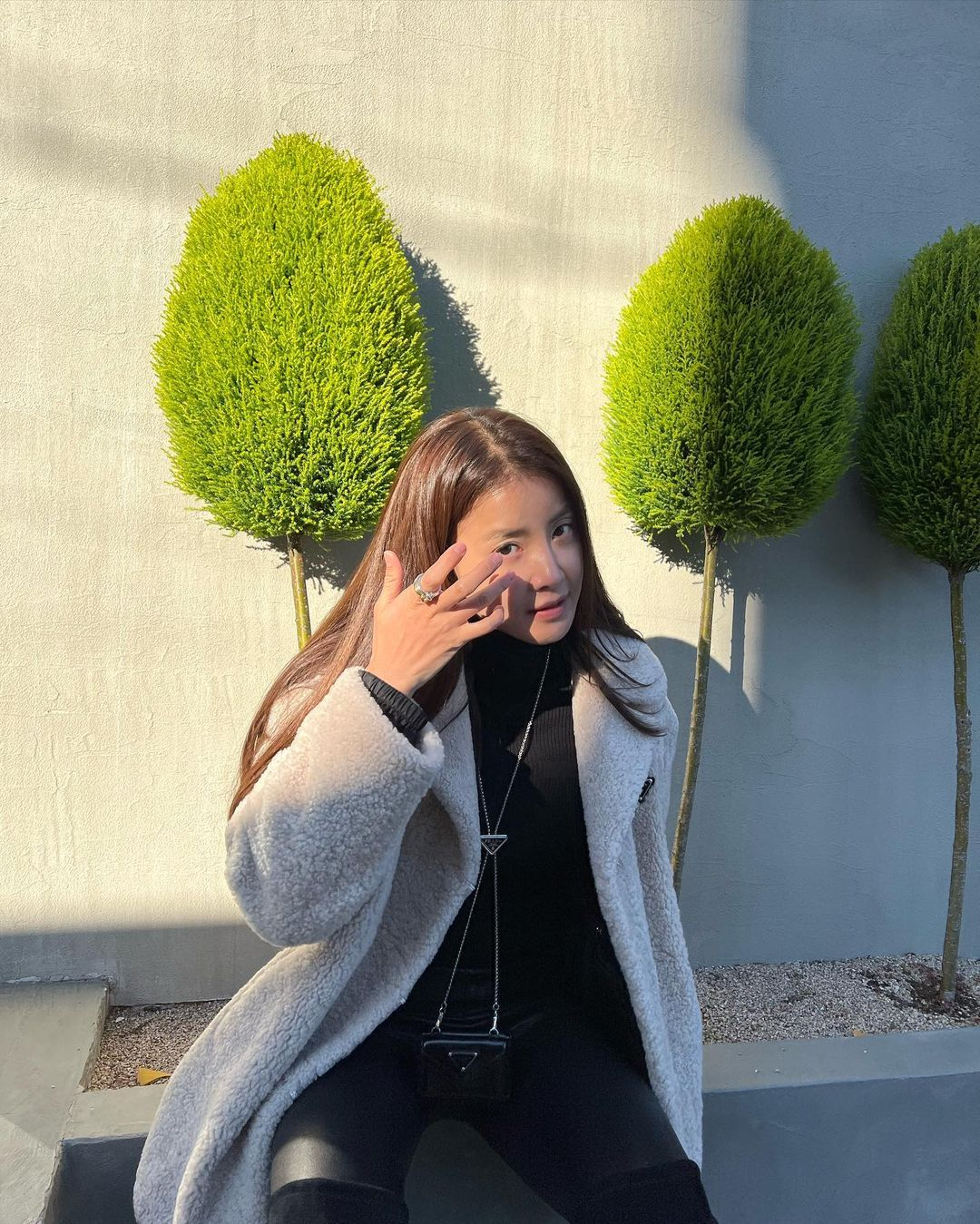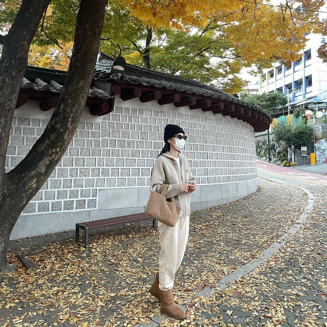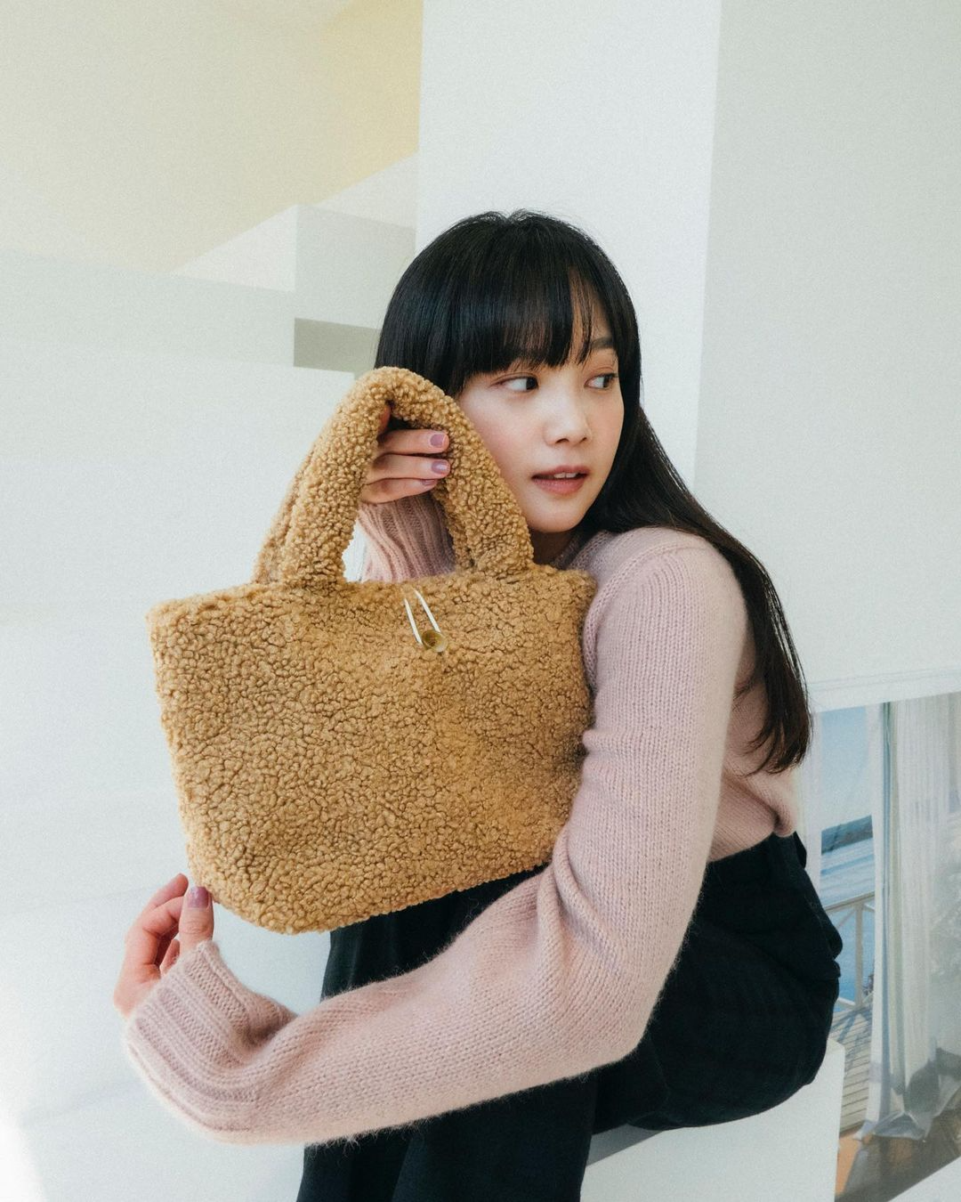 자칫 평범해 보일 수 있는 스타일링에 특별함을 더해준 시어링 백! 올 겨울엔 시어링백을 활용한 코디에 도전해 보는 걸 추천한다.