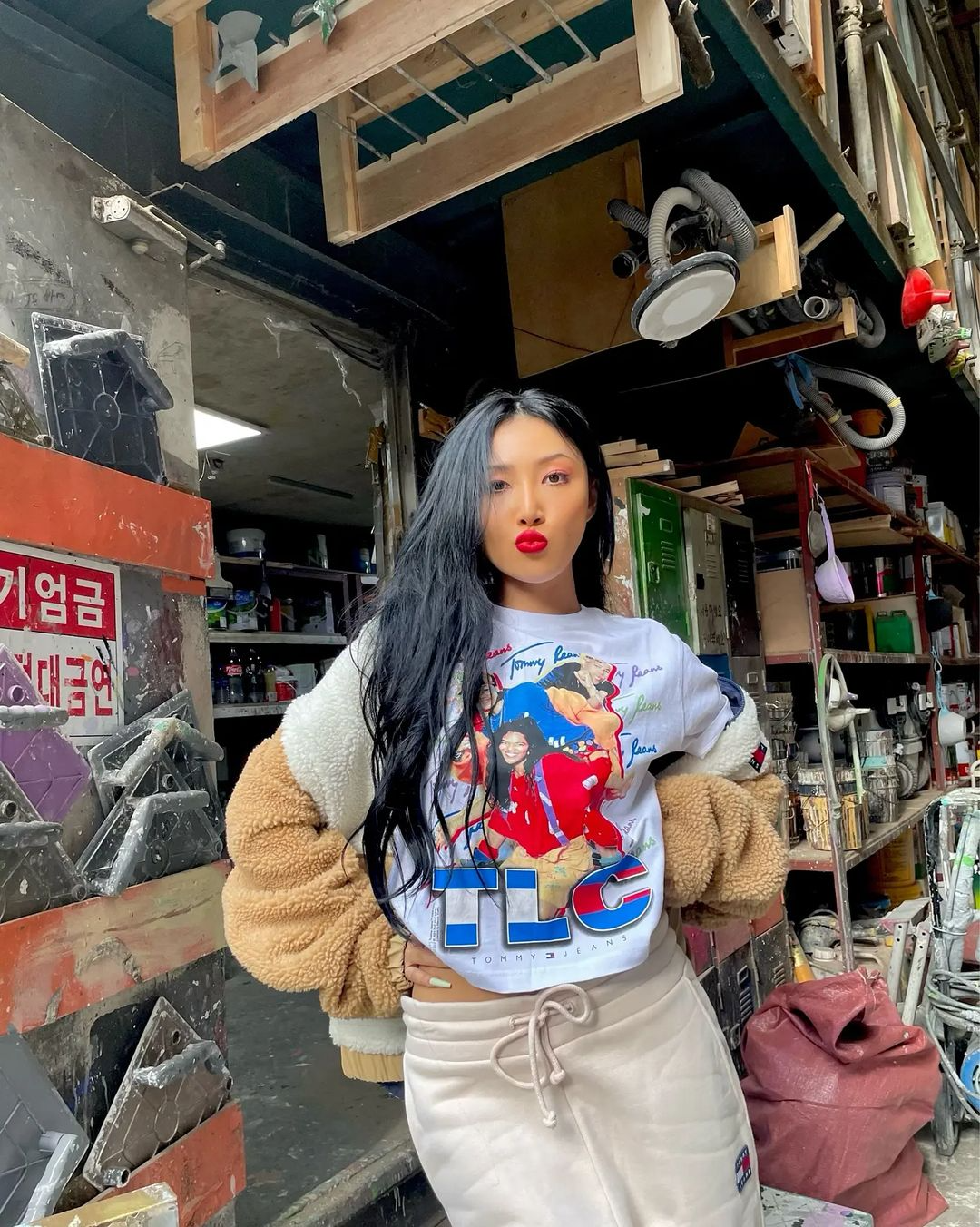 무심한 듯 툭 걸친 시어링자켓은 시니컬한 무드를 연출할 수 있는 좋은 패션 템 중 하나다. 마마무 화사는 화려한 프린팅 티셔츠에 트랙 팬츠와 함께 오버사이즈 시어링 재킷을 걸쳐 캐주얼하면서도 힙한 무드를 선보였다. 반면 이시영은 상, 하의를 올 블랙으로 맞춘 뒤 아이보리 컬러 시어링 재킷을 매치해 간결한 블랙& 화이트 룩을 완성했다.