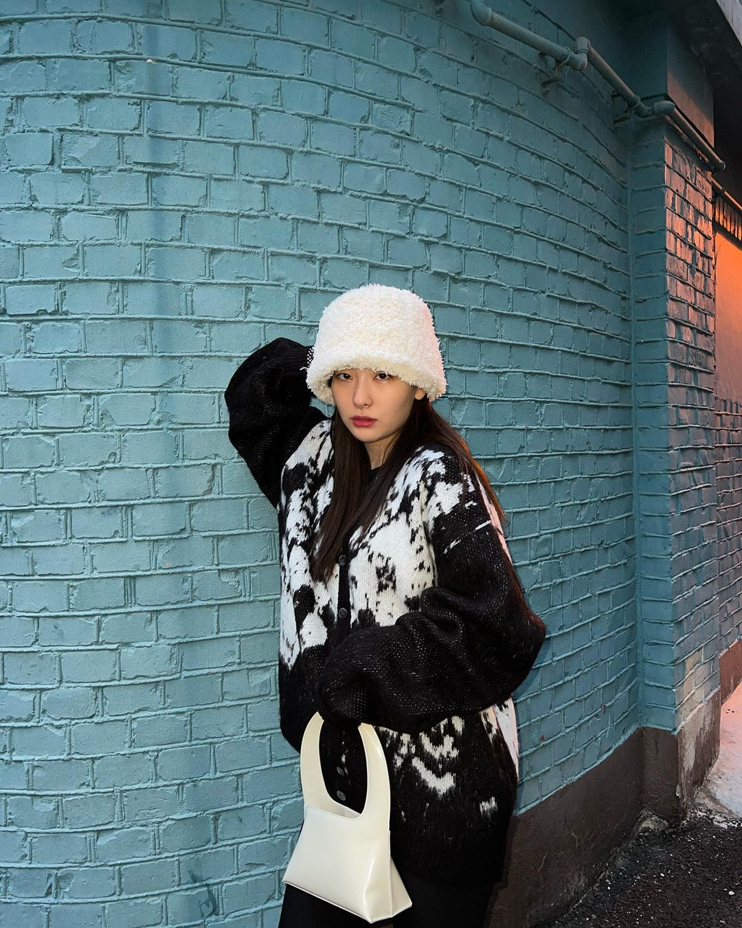 평소 추위를 많이 타거나 유난히 추위에 약한 편이라면 언뜻 봐도 따뜻해 보이는 시어링 모자를 추천한다. 특히 현아와 슬기가 선택한 시어링 모자는 버킷햇 디자인으로 이루어져 있어 정수리는 물론 귀까지 따뜻하게 감싸줄 수 있기 때문! 현아처럼 비슷한 소재의 시어링 아우터와 함께 연출해도 좋고 슬기처럼 가방과 컬러를 맞춰 착용하면 한층 더 센스 있는 스타일링을 완성할 수 있다.