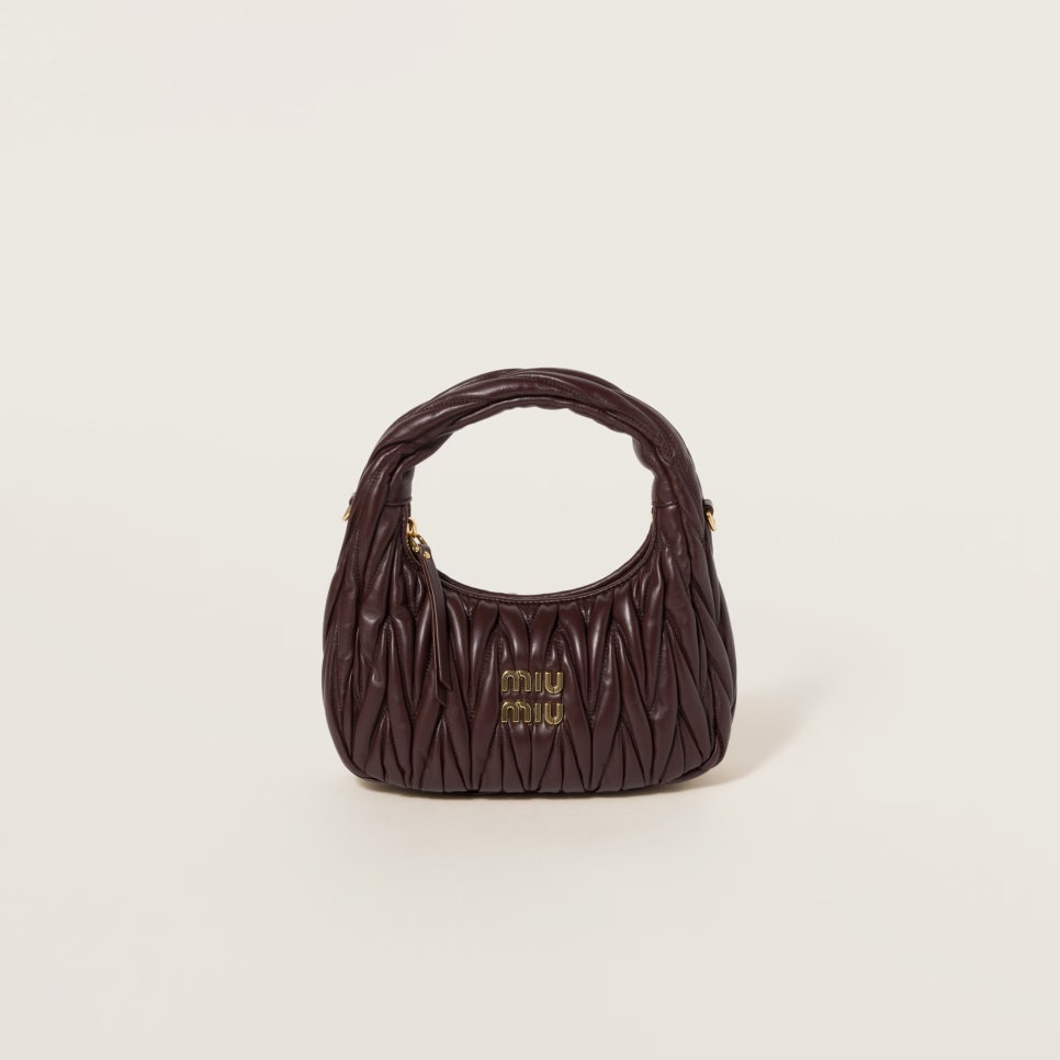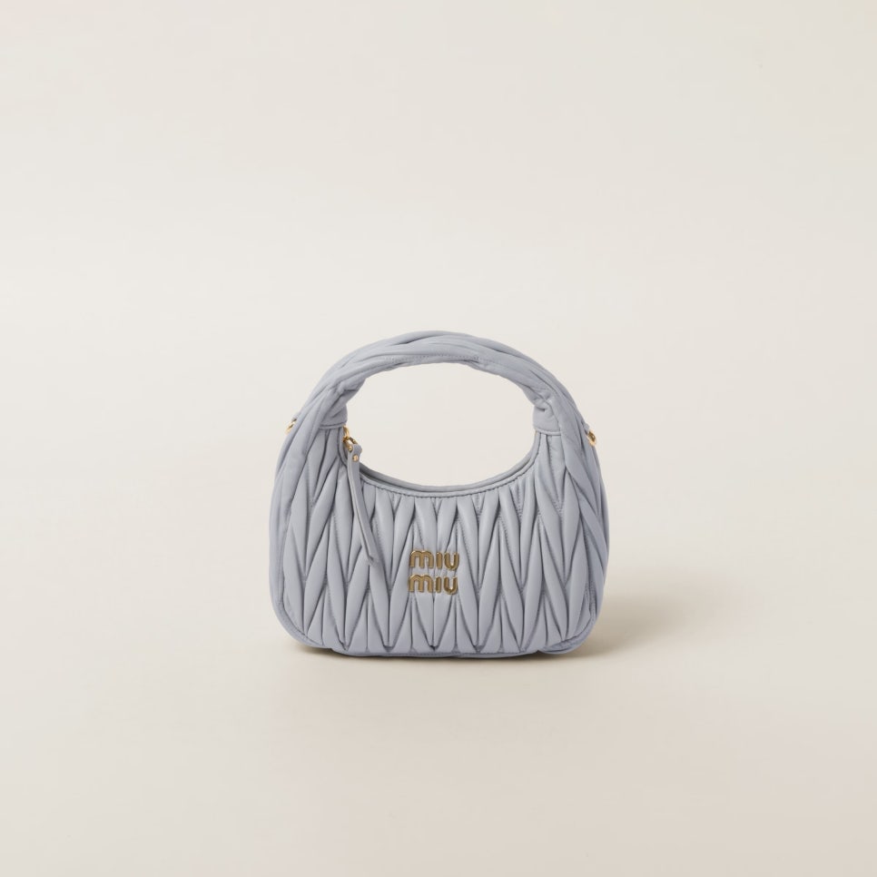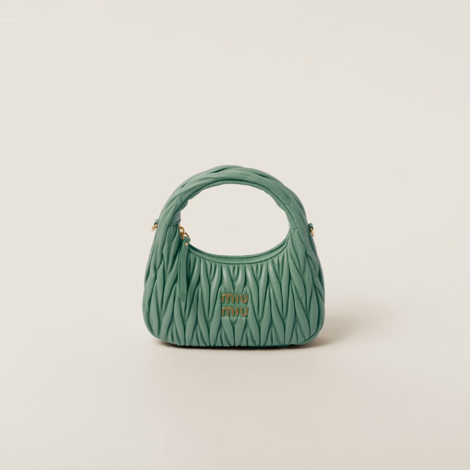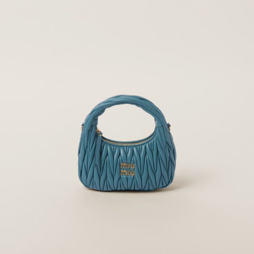 마테라쎄 모티프로 제작된 완더백은 매 시즌마다 재해석되는 미우미우 컬렉션의 아이코닉한 가방이라고 해도 과언이 아닌데요. 미우미우 마테라쎄 나파 가죽 호보 백 또한 정교한 장인정신을 통해 한층 더 입체적인 디자인으로 제작되었습니다.