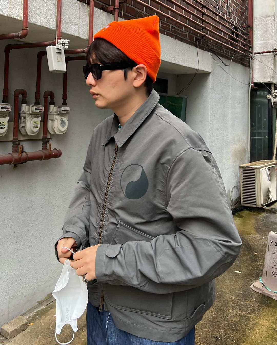 반면 이동휘는 그레이 컬러 무채색 점퍼에 비비드한 오렌지 컬러 비니를 써 포인트를 주었다. 이동휘처럼 톤이 낮은 상의를 입었다면 컬러감이 있는 비니로 활기차고 경쾌한 무드를 주는 것도 추천..