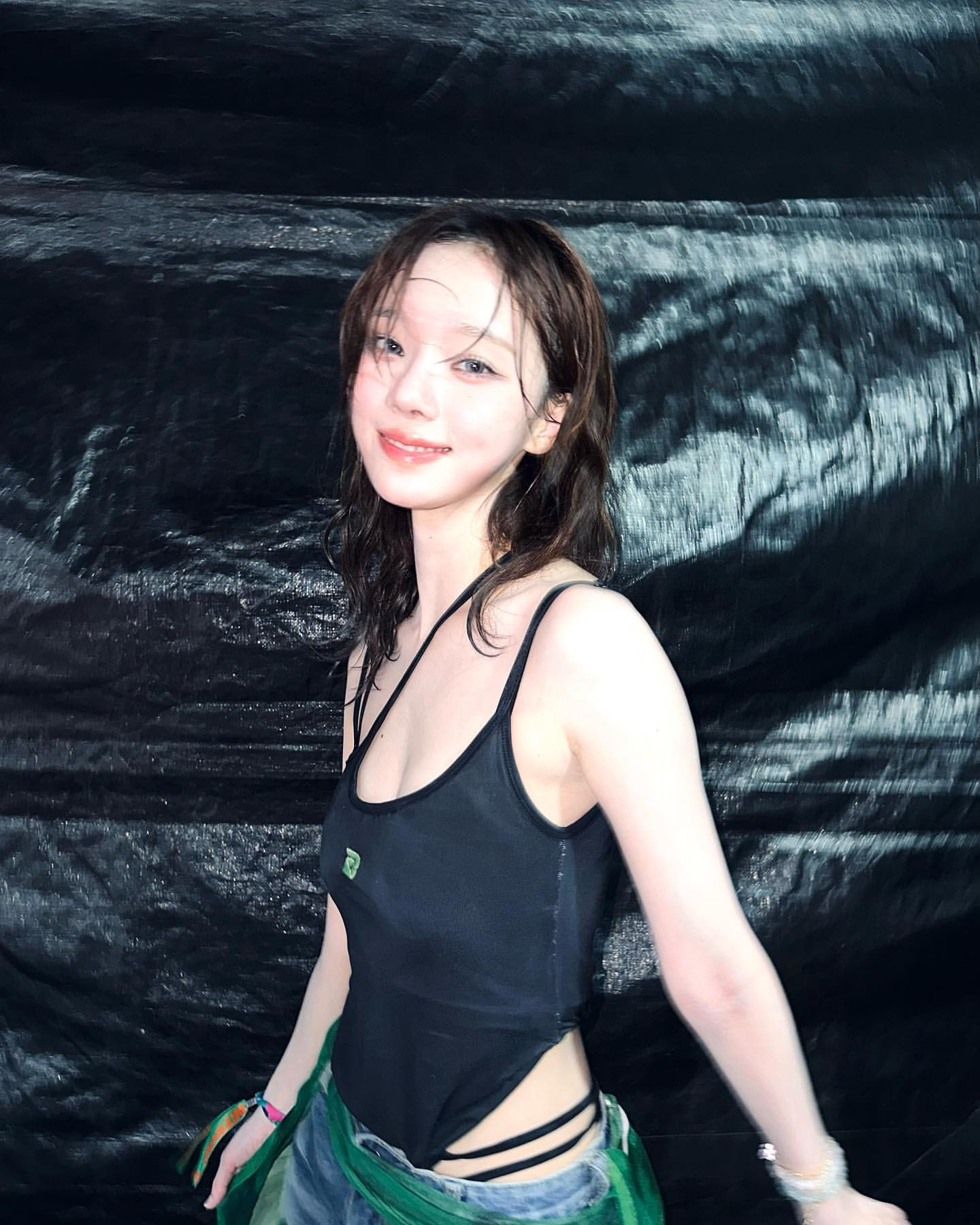 여름 페스티벌 하면 가장 먼저 떠오르는 행사는 단연 워터밤이다. 2023 워터밤 공연 중 윈터는 그린 로고 포인트가 돋보이는 보디 수트에 데님 숏 팬츠를 착용해 트렌디하면서도 힙한 스타일링을 선보였다. 수영복이나 보디 수트가 부담스럽게 느껴진다면 윈터처럼 커버 업으로 숏 팬츠를 활용해 보는 것도 좋다,