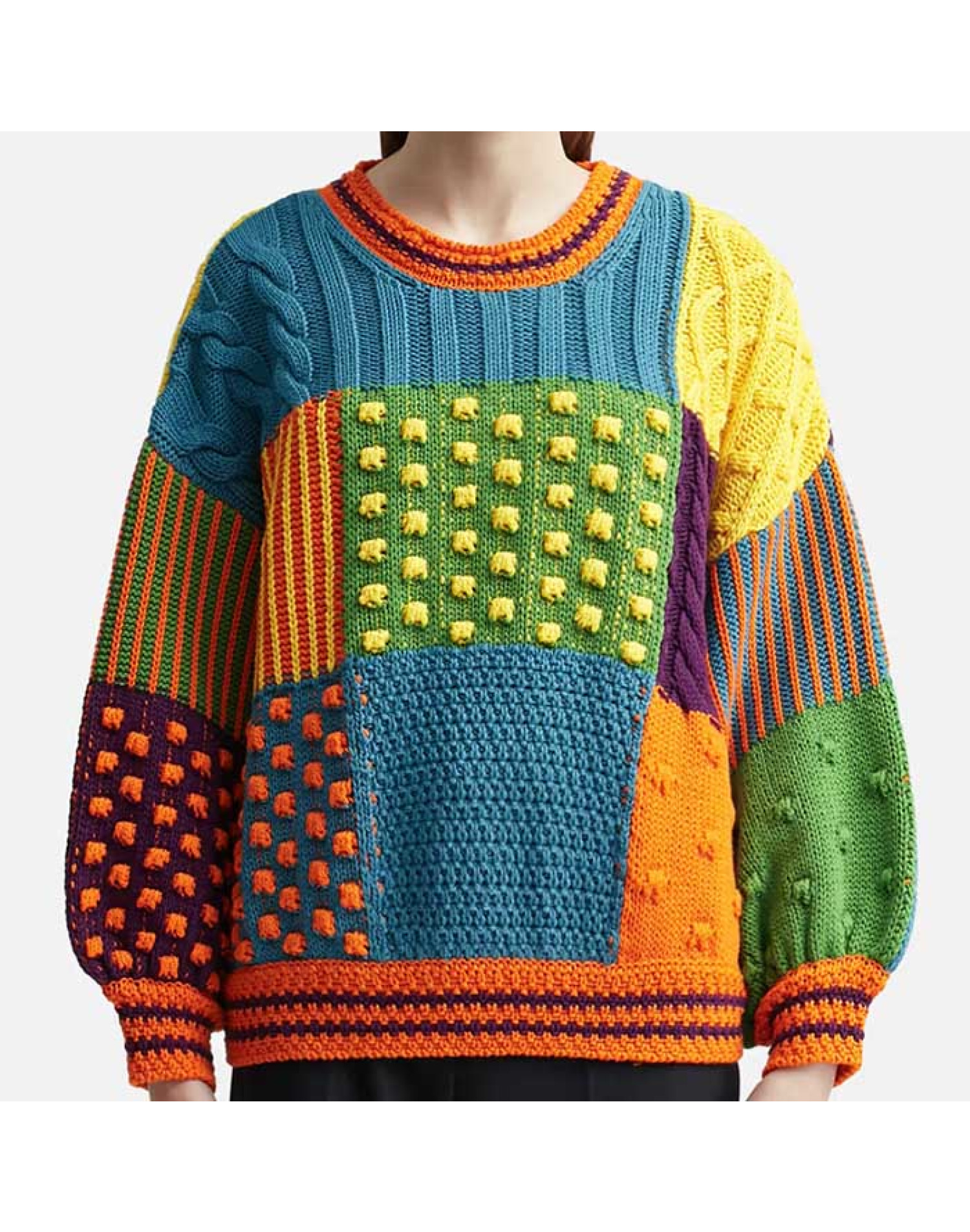 100% 면 소재로 제작되었으며, 릴랙스 핏으로 체형에 구애받지 않고 누구나 편하게 착용이 가능하다. 또 리브드 크루넥 디자인과 멀티 컬러로 키치한 분위기까지 선사해주는 니트. 평소 유니크하면서도 독특한 패치워크 디자인의 니트 스웨터를 찾고 있었다면 아이유가 선택한 겐조 패치워크 버블 슬리브 니트를 선택해 볼 것.