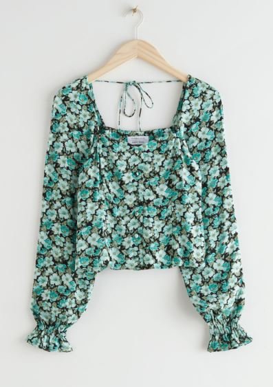 정채연이 착용한 러플 장식의 비스코스 소재의 블라우스는 바로 앤아더스토리즈 제품. 정채연이 착용한 후 일명 정채연 블라우스로 불렸다는 소리가 있을 정도로 잘 어울리는 이 제품은 하트 네크라인과 싱그러운 그린 컬러의 플로럴 패턴이 특징이다. 앤아더스토리즈 특유의 여성스럽고 사랑스러운 무드가 그대로 드러나는 이 블라우스는 다가오는 6월 하객룩으로도 안성맞춤!