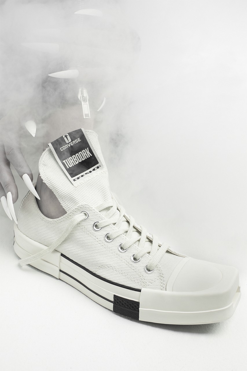 터보다크 척 70은 릭 오웬스 특유의 도전적인 디자인과 해체주의적 성격이 고스란히 적용된 스니커즈로 스퀘어 토 실루엣이 가장 큰 포인트라고 할 수 있다. 또한 미드솔 중앙은 높이, 두께 등이 앞뒤와 비율이 맞지 않도록 제작되었으며 오버사이즈 텅과 코튼 트윌 어퍼 등에서 릭오웬스만의 감성을 느껴볼 수 있는 유니크한 제품.