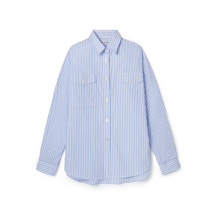 투 포켓 스트라이프 셔츠는 아밤 특유의 뉴 클래식한 무드를 잘 살린 투 포켓 스트라이프 셔츠로 코튼 포플린 소재를 사용해 바스락거리는 촉감이 매력적인 제품이라고 할 수 있다. 그뿐만 아니라 유행을 잘 타지 않는 클래식한 디자인으로 매 년 꾸준히 잘 활용할 수 있는 실용성 넘치는 셔츠.