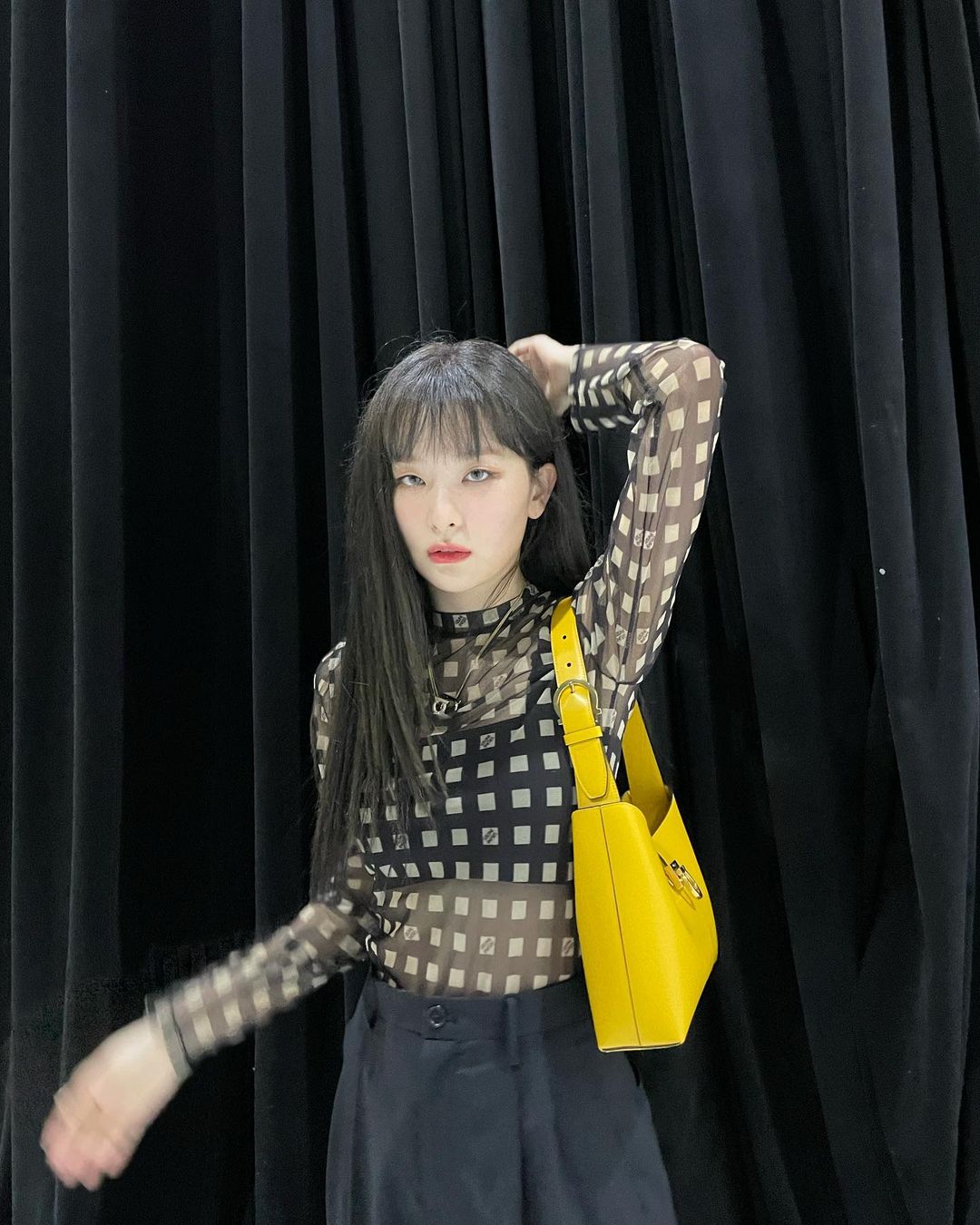 레이어링의 계절 가을, 한층 더 유니크한 스타일링에 도전하고 싶다면 슬기가 선택한 시스루 톱을 체크해 볼 것. 슬기는 블랙 브라 톱에 블랙 팬츠와 함께 티셔츠를 매치해 힙한 아웃핏을 선보였다.