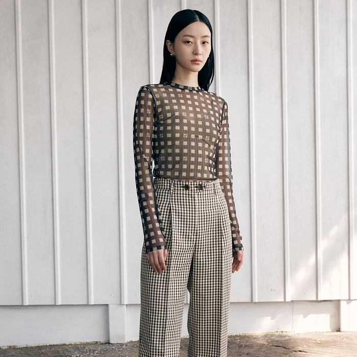 슬기 PICK! 티셔츠 - 리유니 CHECK MESH LONG SLEEVE TOP