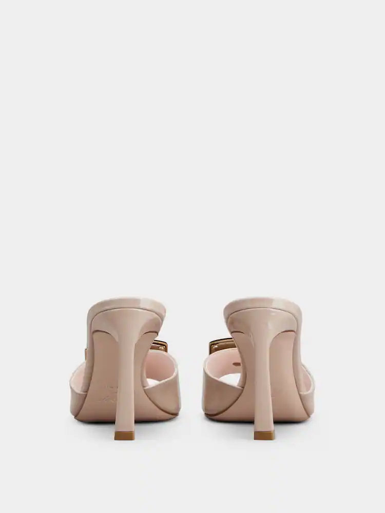 로저비비에 트럼펫 메탈 버클 뮬은 1970년대에서 영감을 받은 트럼펫 힐이 가장 큰 포인트인 펌프스 구두입니다. 아래로 갈 수록 살짝 넓어지는 디자인이 시선을 사로잡는 포인트 💖