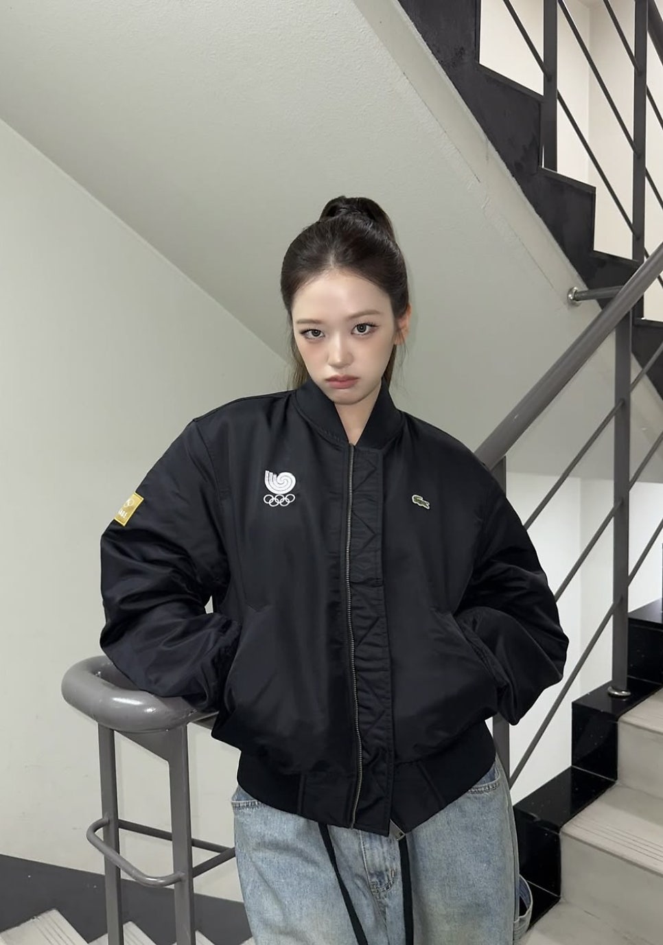 안유진 라코스테 봄버 자켓 가격은? 88 서울 올림픽 호돌이 패치가 귀여운 코디