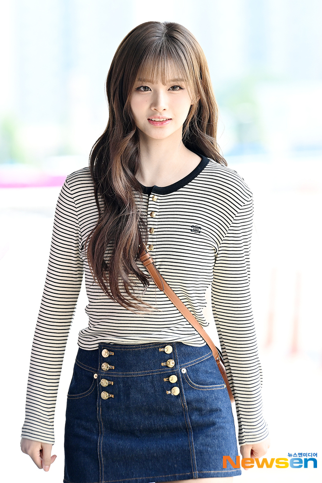 팬사인회를 가기 위해 김포공항을 찾았습니다. 엔믹스 중에서도 특히나 인형같은 외모로 잘 알려진 설윤은 이 날 편안하면서도 캐주얼한 공항패션으로 등장해 화제를 모으기도 했죠. 설윤은 여름이지만 불구하고 에어컨 바람이 빵빵한 공항이나 비행기 등 실내에서 간편하게 입기 좋은 셀린느의 스트라이프 롱 티셔츠에 데님 스커트를 선택했는데요.