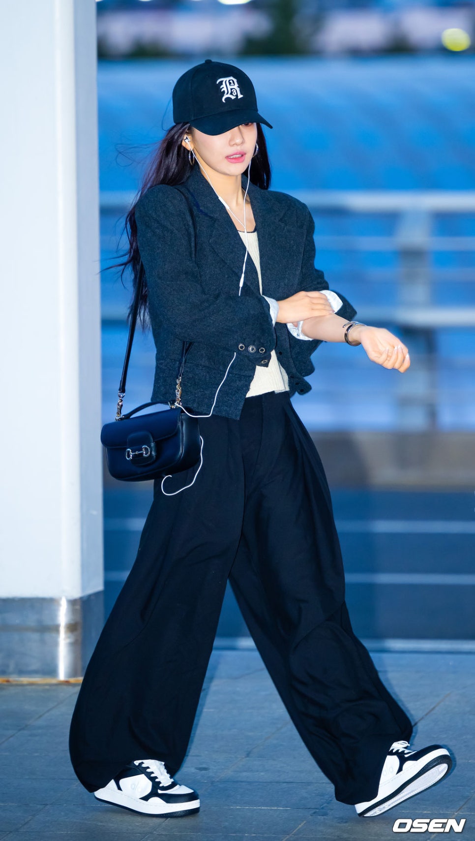 특히 첫 번째 사진 속 에스파 닝닝은 시크한 볼캡과 함께 큼직한 링 귀걸이를 함께 매치해 강렬한 스트리트 무드를 완성했어요. 스포티한 트레이닝 팬츠에 세미포멀한 자켓을 터해 센스 있는 걸크러시 패션을 보여주고 있습니다.