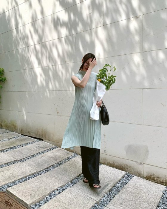 점점 더워지는 초여름 날씨 탓에 한 여름까지 입을 수 있는 여자 하객룩을 찾고 있다면 인플루언서 누가영의 원피스 스타일링을 참고해 봐도 좋다. 새틴 소재나 실크 소재 등 고급스러운 슬리브리스 원피스를 활용하면 계절감을 살리면서 청량한 하객룩을 완성할 수 있다.