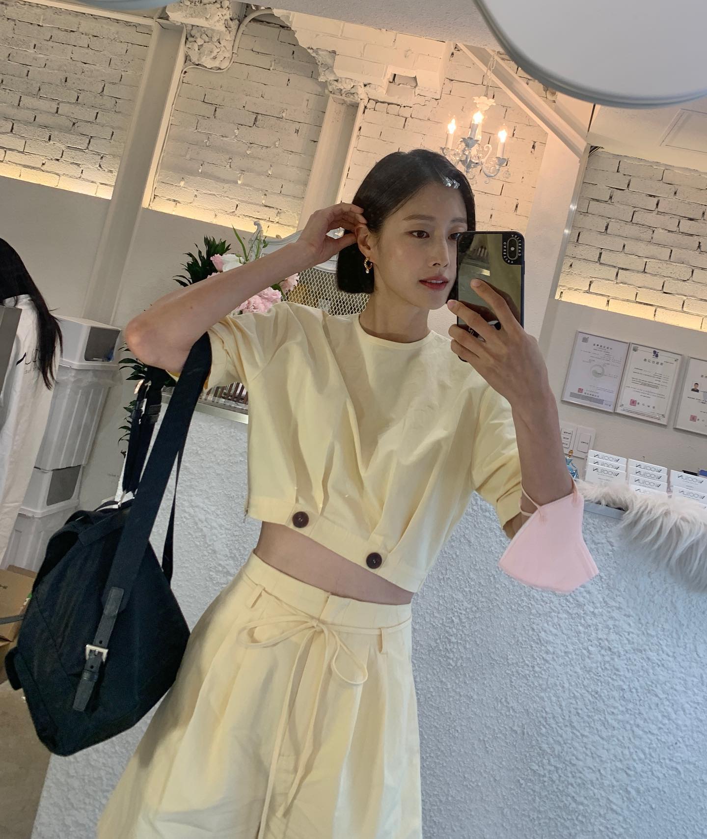 게 다가 소재와 디자인에 따라 선택지 또한 다양하다는 것도 장점이다. 무더운 초여름에도 화사한 하객룩을 고르고 싶다면 이현이처럼 레몬 컬러 와이드 팬츠와 버튼 포인트의 블라우스를 셋업으로 매치해 보는 걸 추천한다.