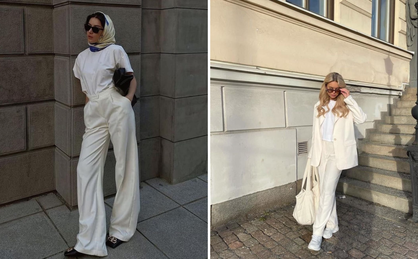 화이트 룩은 화사하고 깔끔한 느낌을 주긴하지만 체형 보정에 취약해 아무나 쉽게 소화할 수 없는 화이트 룩이지만 타이트하지 않은 낙낙한 느낌의 슬랙스와 함께라면 충분히 가능하기 때문이다. 올 화이트 룩이 조금 심심하게 느껴진다면, 재킷이나 슬랙스의 소재를 통기성이 좋은 린넨이나 새틴 등으로 바꾸어 보는 것도 좋은 방법!