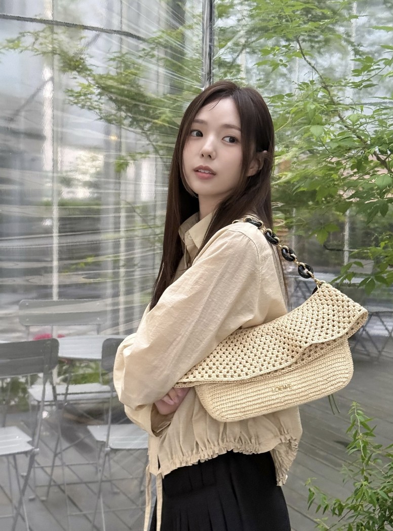 채수빈이 착용한 제품은 로에베의 ‘Medium Ola bag in raffia and calfskin’입니다. 이 가방은 로에베 2025 S/S 시즌 제품으로, 특유의 내추럴한 질감과 고급스러운 디테일이 조화를 이루고 있는 것이 특징입니다 ㅎㅎㅎ