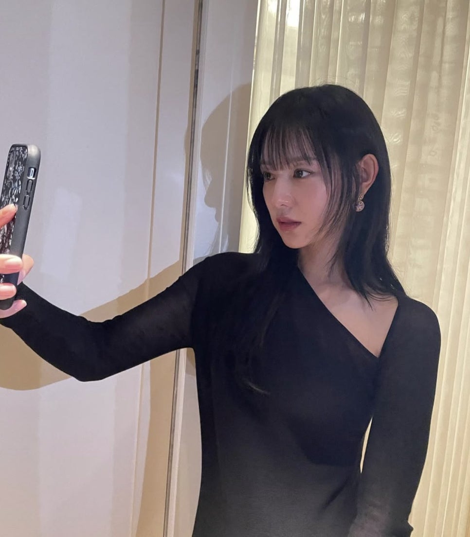 태연은 중단발에 가볍게 층을 준 레이어드 컷과 자연스럽게 흐르는 앞머리로 세련된 무드를 완성하고 있습니다. 특히 그녀가 종종 선보이는 젖은 듯한 텍스처의 스타일링은 마치 손질하지 않은 듯하면서도 의도된 무심함이 느껴져 힙하고 감각적인 분위기를 더해줍니다.