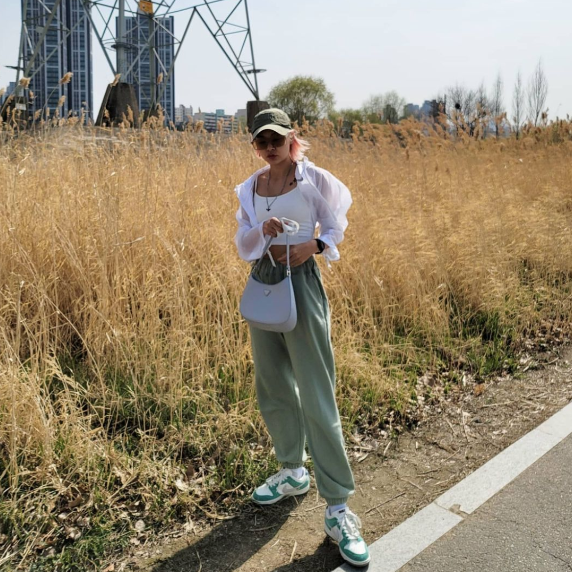 허리와 발목에 밴드가 있어 활동성이 좋은 조거 팬츠는 누구나 멋스럽게 스타일링할 수 있고, 손이 많이 간다는 장점이 있다. 이러한 장점을 지닌 조거 팬츠는 베이식한 슬리브리스 톱이나 크롭 톱과는 찰떡궁합이라는 사실! 톱 모델 송해나는 컬러풀한 조거 팬츠를 군더더기 없는 화이트 크롭 톱과 시스루 재킷과 매치해 힙한 애슬레저 룩을 선보였는데, 팬츠와 비슷한 컬러의 슈즈와 모자 등 센스있는 액세서리 매칭 스킬 또한 체크해두자.