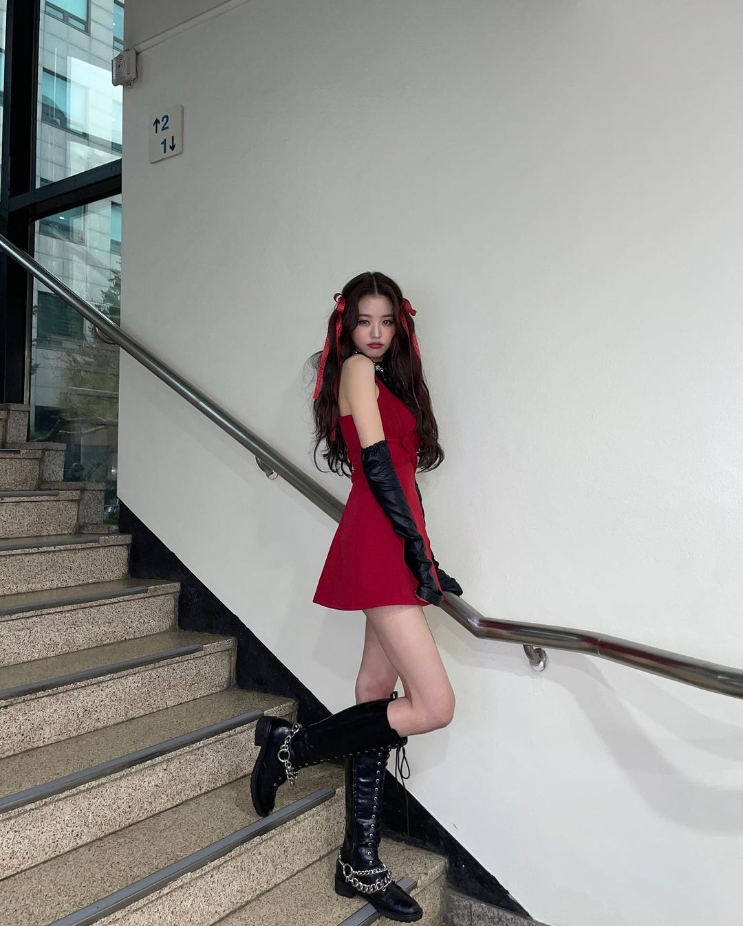 연말엔 조금 더 사랑스럽고 여성스러운 무드의 데이트 룩을 선보이고 싶다면, 장원영과 조이가 선택한 미니 원피스 스타일링을 체크해보자. 장원영은 레드 미니 원피스에 팔목까지 올라오는 롱 가죽 장갑 그리고 원피스 컬러 헤어 액세서리를 매치해 귀여우면서도 섹시한 아웃핏을 연출했다.