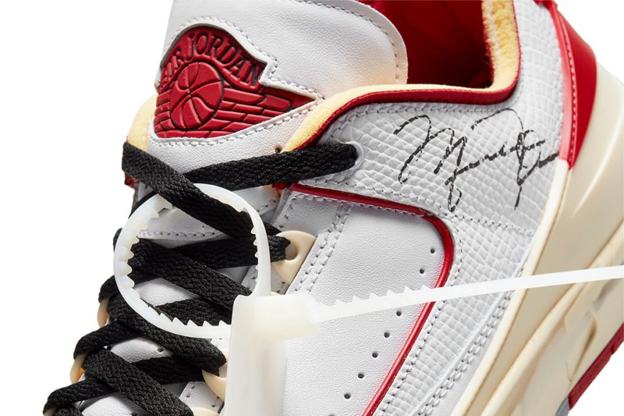 버질아블로와 나이키가 협업을 통해 탄생한 오프화이트 X 나이키 에어 조던 2는 벗겨진 듯한 솔과 어퍼 측의 마이클 조던 사인, 그리고 인솔에 새겨진 점프맨과 오프화이트 로고가 포인트. 그뿐만 아니라 모든 스니커즈가 같은 방식으로 노후되지 않는다는 것을 보여주기 위해 오프화이트 X 에어 조던 2의 중창 균열은 제각각 다르게 만들어졌다고 한다. 또한 버질 아블로는 이번 협업을 위해 실제로 마이클 조던이 신었던 신발을 스캔하고 나이키 DNA 아카이브 오리지널 디자인을 거꾸로 설계했다고 밝혔다.